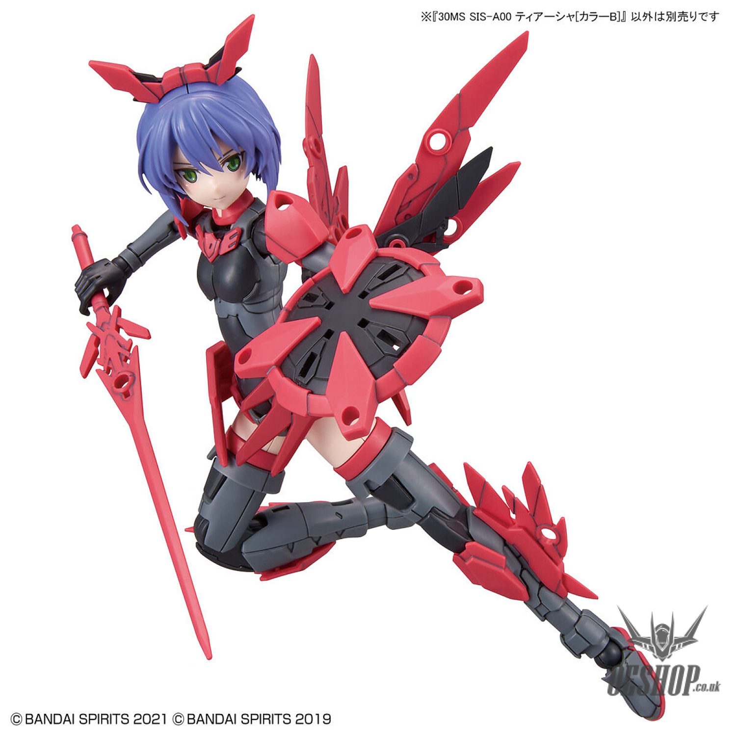 Tiasha is the newest member of Bandai's 30MS (30 Minutes Sisters) figure kit lineup! This all-in-one kit includes parts to build the highly posable Tiasha, three different faces, and armor parts. She's easy to assemble, and the parts are molded in color so you don't need paint. Her facial expressions are tampo printed, and she's equipped with 3mm-diameter ports common to the 30 Minutes series, so you can use 30 Minutes Missions parts as well. Order her today!
