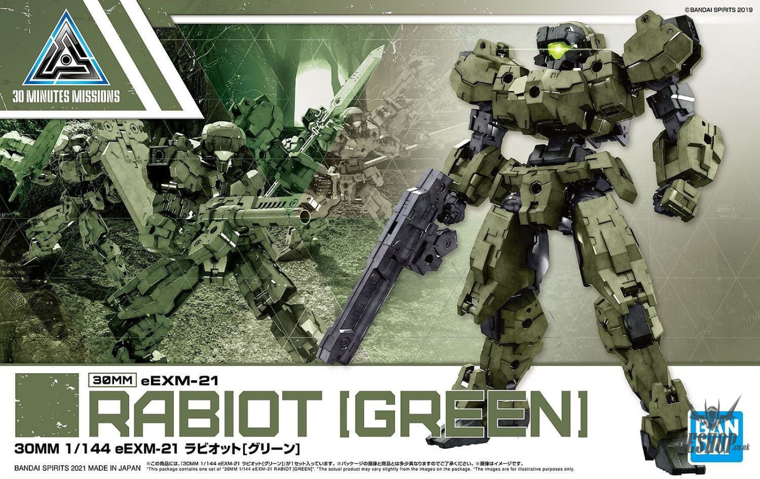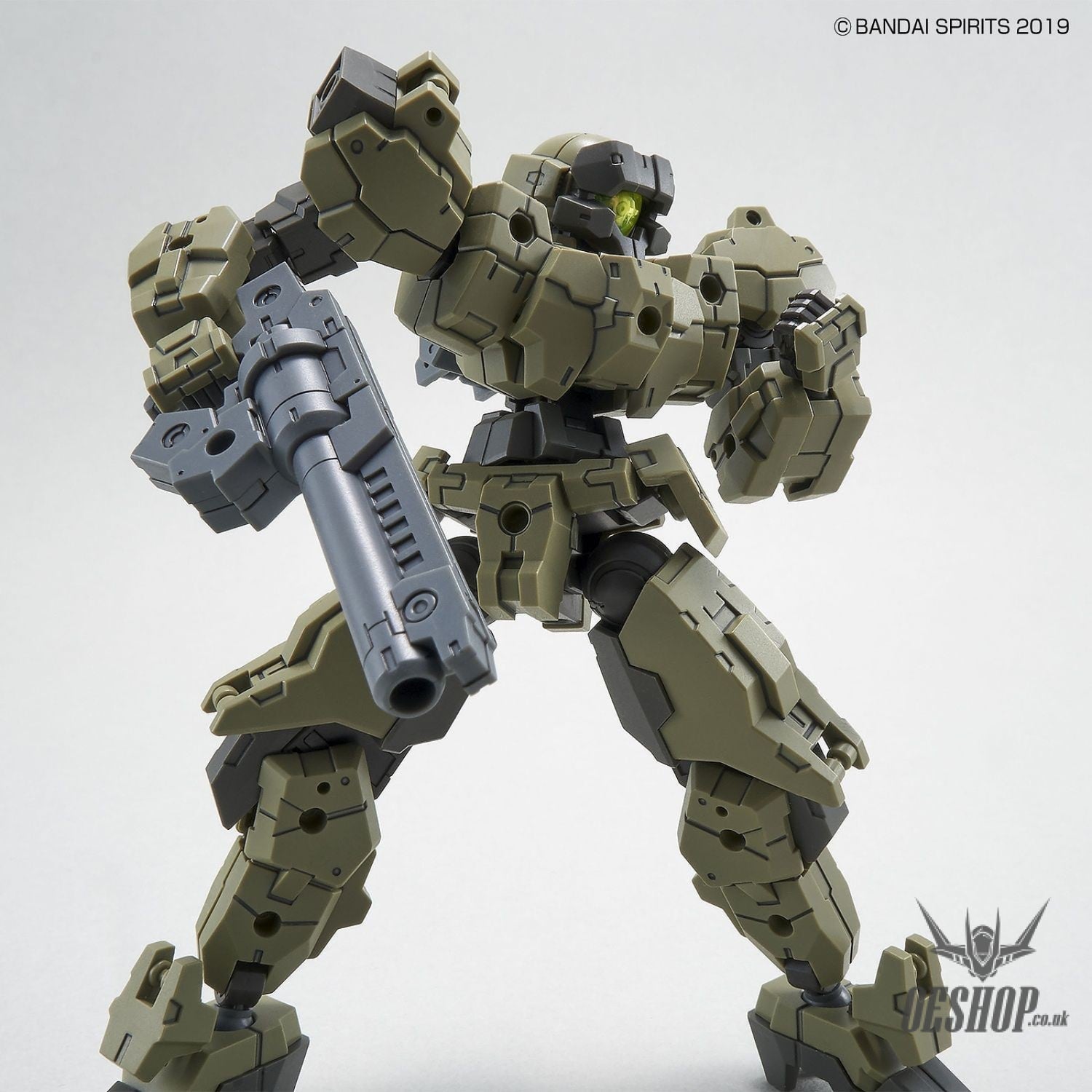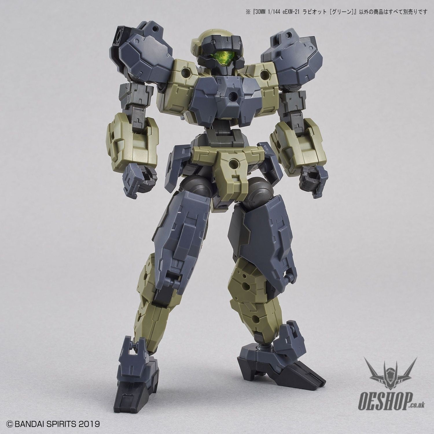 The United Earth Forces eEXM-21 Raviot in the 30MM line appears in an earthy green! A C-type joint structure was added to the exterior for all-new customization options!