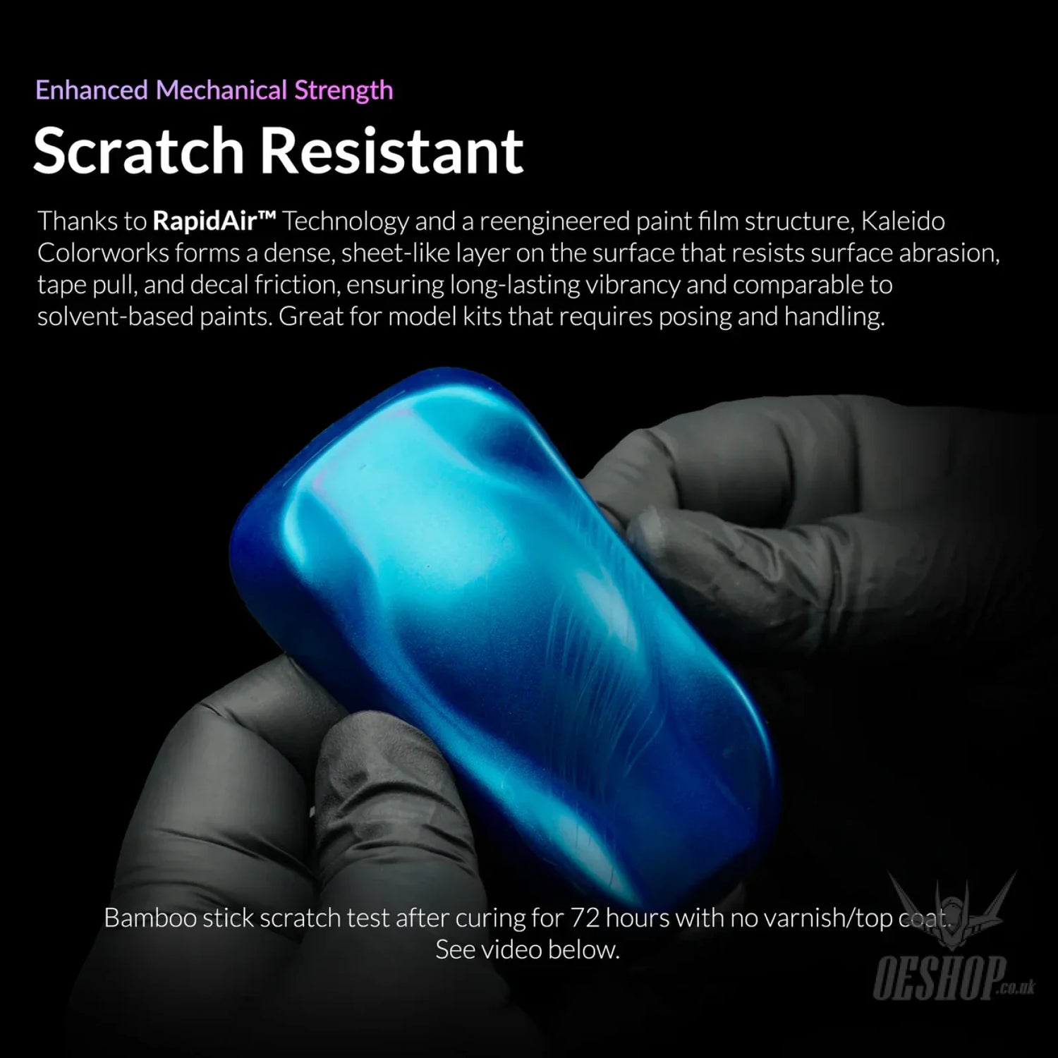 Kaleido Colorworks RapidAir™ Series is a premium water-based acrylic paint designed for smooth, high-performance spraying. Made with an eco-friendly, non-toxic, and solvent-free formula, it’s factory-pre-thinned for direct use or easy dilution. Powered by RapidAir™ Technology, it addresses common water-based paint issues, such as beading, uneven coverage, and sagging, by applying in a smooth, sheet-like layer. This advanced formula delivers strong adhesion, scratch resistance, durability, and a glossy finish similar to solvent-based paints. No primer needed—works on ABS, PE, PC, resin, glass, fabric, metal, and more. Perfect for model painting, crafts, DIY, and professional use.