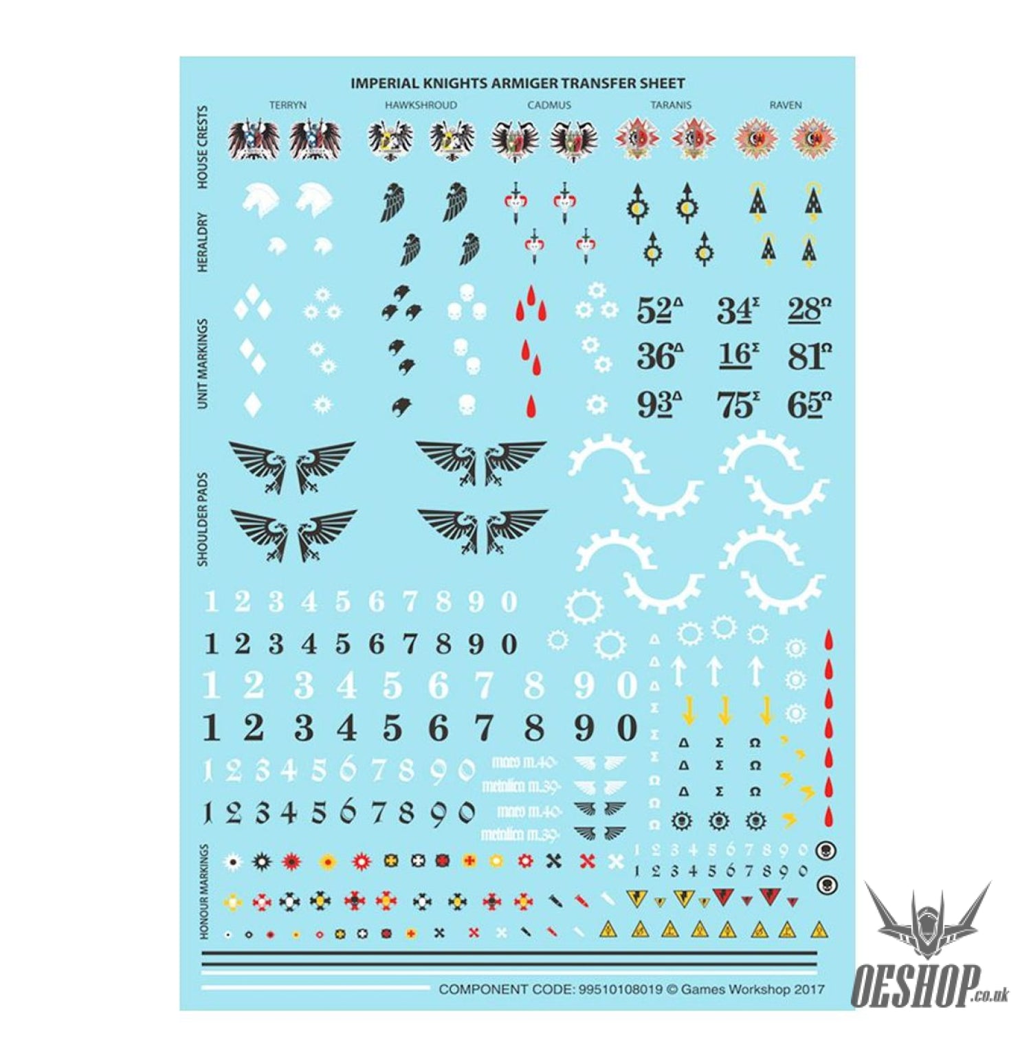 This kit comprises 148 plastic components, and is supplied with 2x Citadel 100mm Round Bases. Also included is an Armiger transfer sheet, featuring heraldry for Imperial Knights. These miniatures are unpainted and require assembly – we recommend using Citadel Plastic Glue and Citadel paints.