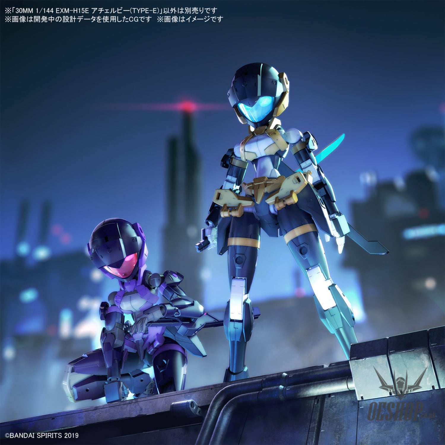 The new Maxion EXAMACS "Acerby" action figure model-kit lineup from Bandai's "30 Minutes Missions" series now includes a Type E with a newly designed blade! This model kit comes with parts to build the figure itself, armor parts, and weapons too. Two types of armor that can be attached to the shoulders and waist are included; the head visor can be adjusted up and down by replacing parts. The clear parts of the visor can be removed and connected to the waist joint parts, and the newly designed energy blade can be removed from its sheath. A chest part is also included that can be customized with the armor that comes with the Spinatia (sold separately). Place your order today!