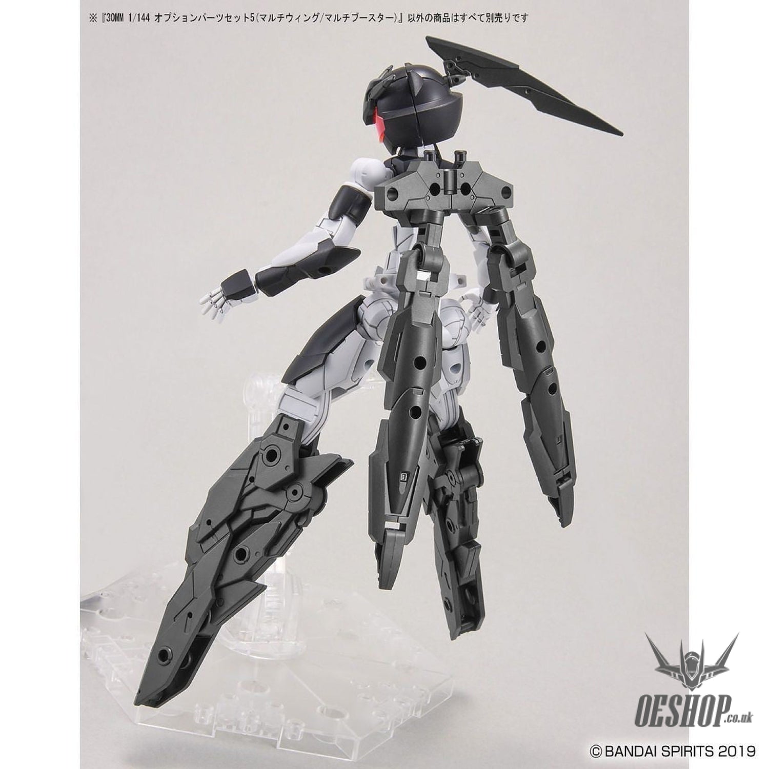This 30MM (30 Minutes missions) accessory set includes a multi-wing that changes its appearance when it's deployed! Attach it to your 30MM figures (sold separately) with the included joint parts; the multi-wing can also be used as a custom part for the legs. A multi-booster that can be folded is also included, as are two types of custom mask and head parts. Order yours today!