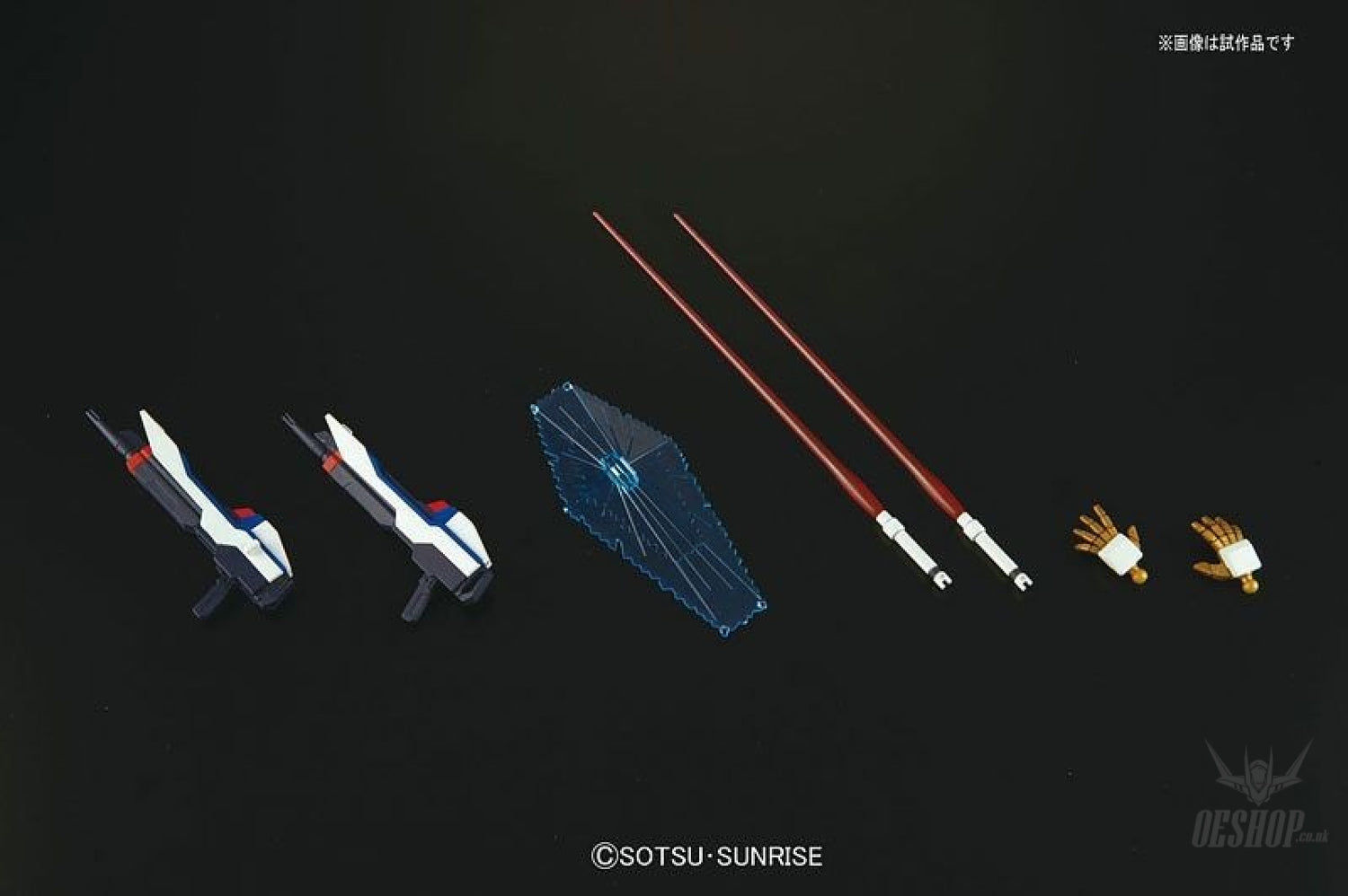The High Grade Cosmic Era ZGMF-X20A Strike Freedom Gundam can recreate its HIMAT and Full Burst modes! Fully posable after assembly, it's armed with two of the MA-M21KF High-Energy Beam Rifle, two of the MA-M02G Beam Saber and an MX2200 Beam Shield. All parts come molded in multiple colors and features snap fit construction. Colorful marking seal stickers are included to provide extra colors and markings.