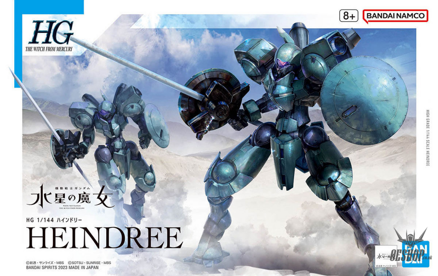 The Heindree from "Mobile Suit Gundam: The Witch from Mercury" joins Bandai's "HG" model-kit lineup! It's designed for ease of assembly by using parts that are mainly post-fitted to avoid pinching; the ball joints on the neck and waist are designed with a space to accommodate forward- and backwards-tilted poses. In addition to its characteristic massive form, it's equipped with a special weapon that's as tall as it is, and can be rotated too. Its shield is mounted to its left arm; the arm can be moved so the shield is held in front. Its backpack is equipped for three nozzles for high mobility, too. Order yours now!