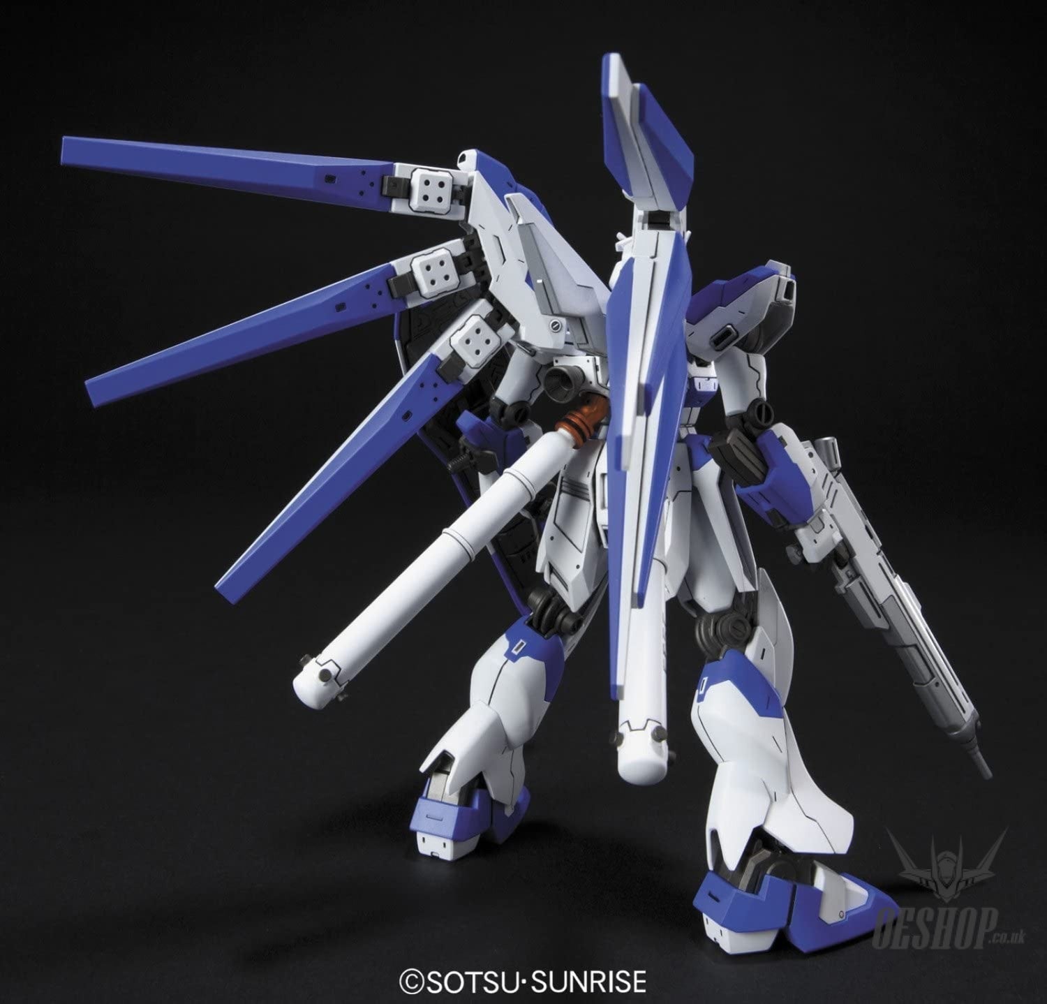 First introduced in the "Mobile Suit Gundam: Char's Counterattack - Beltorchika's Children" novel, the Hi-Nu Gundam now gets the HGUC treatment from Bandai! This snap-fit plastic kit features polycap-jointed articulation and comes with a Beam Rifle, Nu Hyper Bazooka, Beam Saber, and shield, plus two detachable Fin Funnels that can be set in firing mode. Foil stickers and marking stickers are provided. (Action Base 2 Black shown in the photos below is not included; sold separately.)