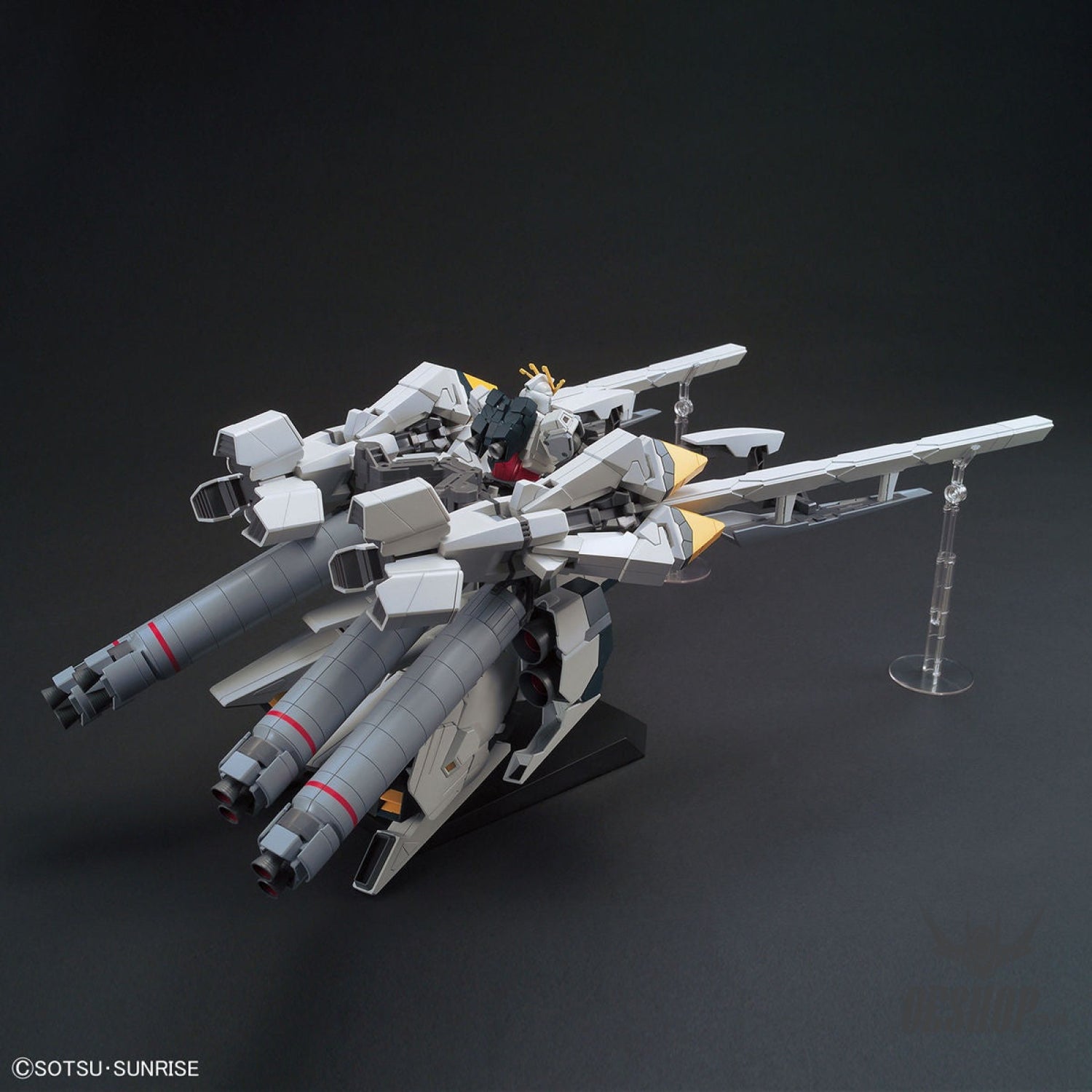 As seen in "Mobile Suit Gundam NT," the mighty Narrative Gundam appears with its super-large "A" equipment pack! The weapons can be worn on its regular body, and an action gimmick for the Chest Expansion is also included. The hip joints feature extra-wide action for full leg movement, and stands are included to keep the huge armaments supported. Includes foil stickers for the markings. Order yours today!