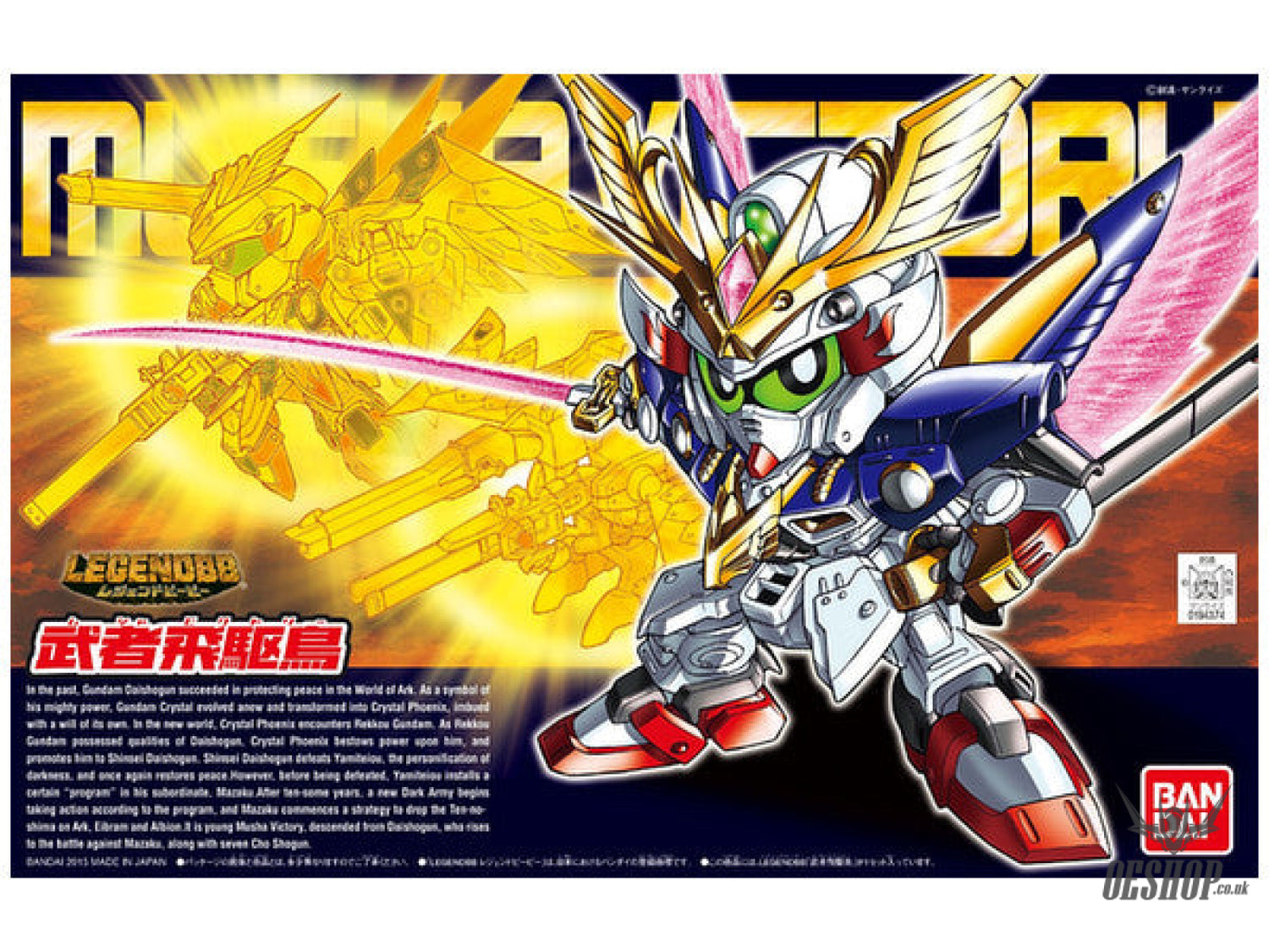 This kit packs quite a punch for a BB Gundam. Musha Victory is equipped with more accessories than you can shake a stick at! The beam wings are made with parts molded in glittering transluscent plastic, and antenna pieces molded in shining, metallic gold! Snap on more gold parts for a hulking look for a BB Gundam, including not only armor pieces but also wings, mega beam rifle, mega beam buster, and hawk armor.
