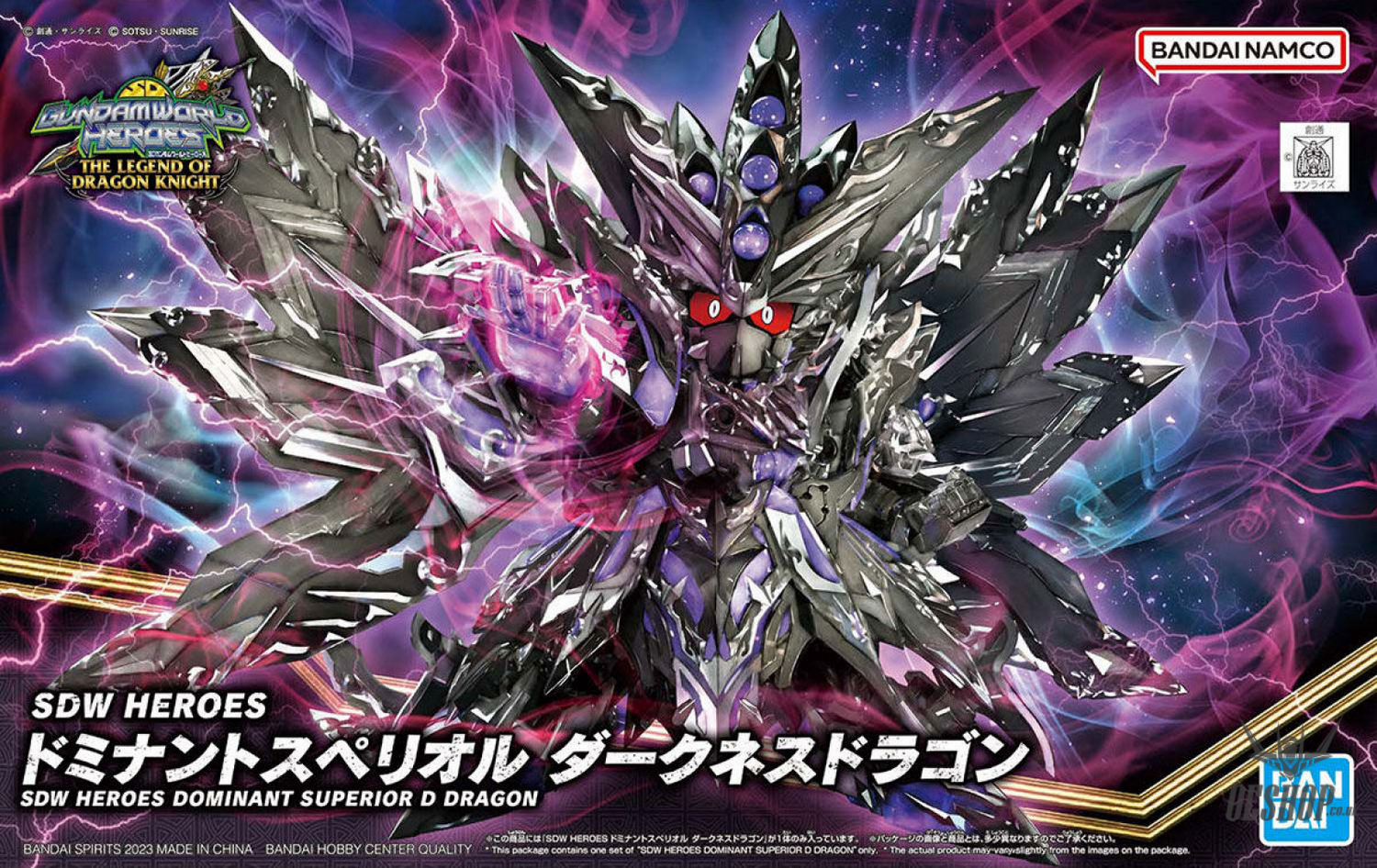 A new character from the side story project "SD Gundam World Heroes THE LEGEND OF DRAGON KNIGHT" joins the "SDW Heroes" model-kit lineup from Bandai! Its wings and tail are articulated with ball joints for expressive posing; clear purple palm parts are included. Order yours today!