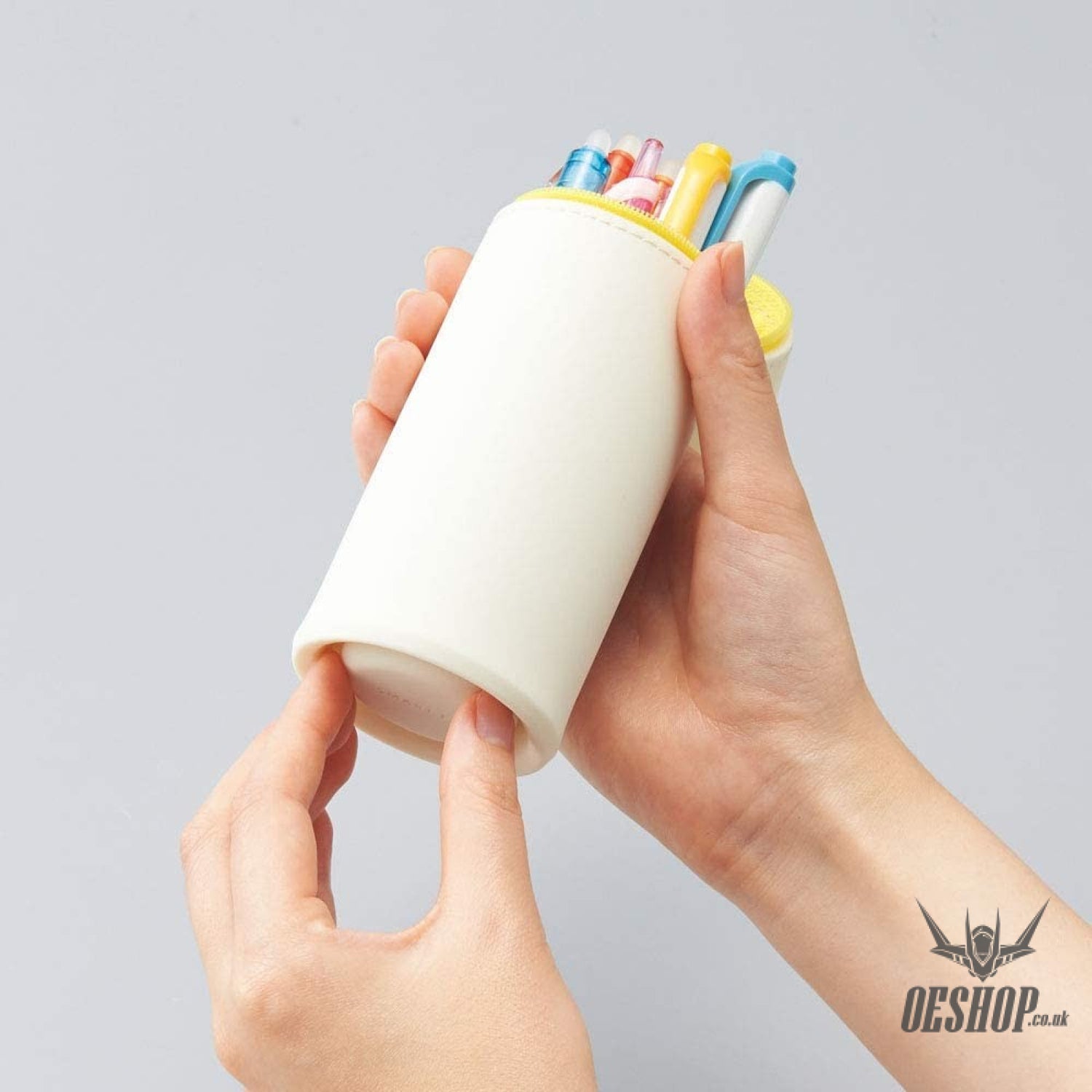 Silicone pen case which is able to transform into a pen stand. This pen case that can hold about 15 pens and can also hold scissors and an 18 cm ruler.