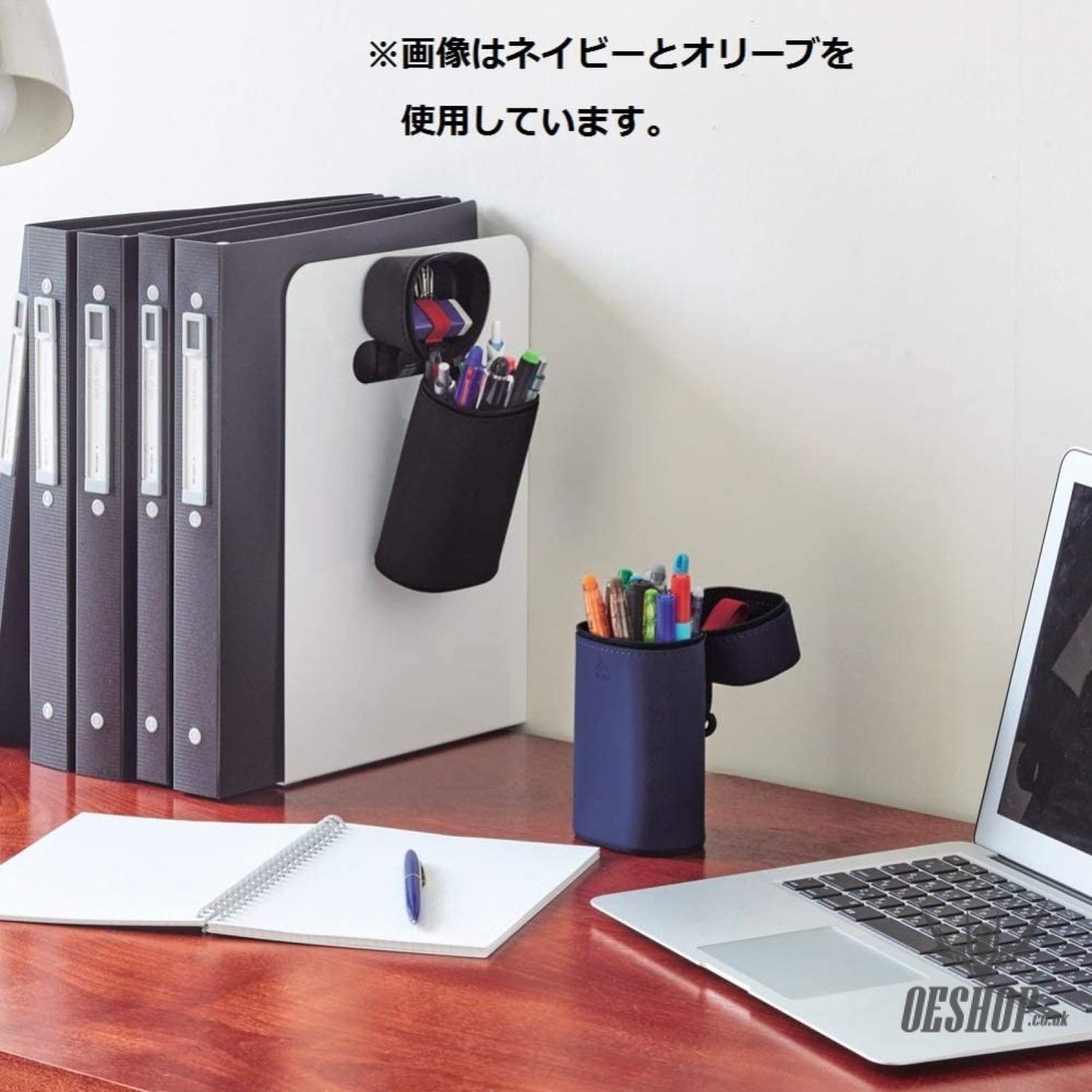 A stand pen case with a magnet in the lid part, can accommodate about 20 pens. You can use the inside of the lid as a clip case or stick it on a steel surface