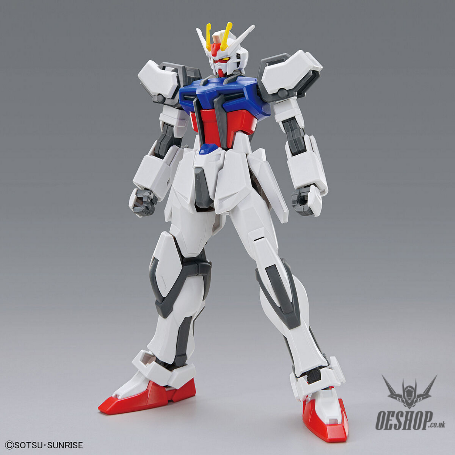 The Strike Gundam is now part of Bandai's Entry Grade model-kit lineup! Its bold and excellent parts division and color-coding makes it easy to assemble, with just 79 parts and no need for paint or stickers. The runner placement is easy to understand, and the parts can be removed by hand -- nippers are not necessary! It easily supports bold action poses with its large range of movement; a beam rifle and shield are included in its equipment. Order yours now!