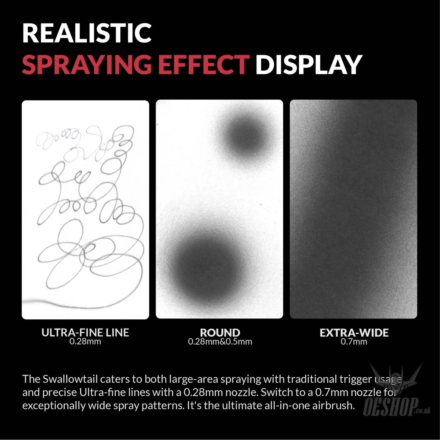 3x Needle Sizes: The StudioG Swallowtail airbrush includes three needle sizes for a variety of applications. The 0.28mm needle is perfect for fine, precision work, while the 0.5mm and 0.7mm needles are ideal for covering larger surface areas.