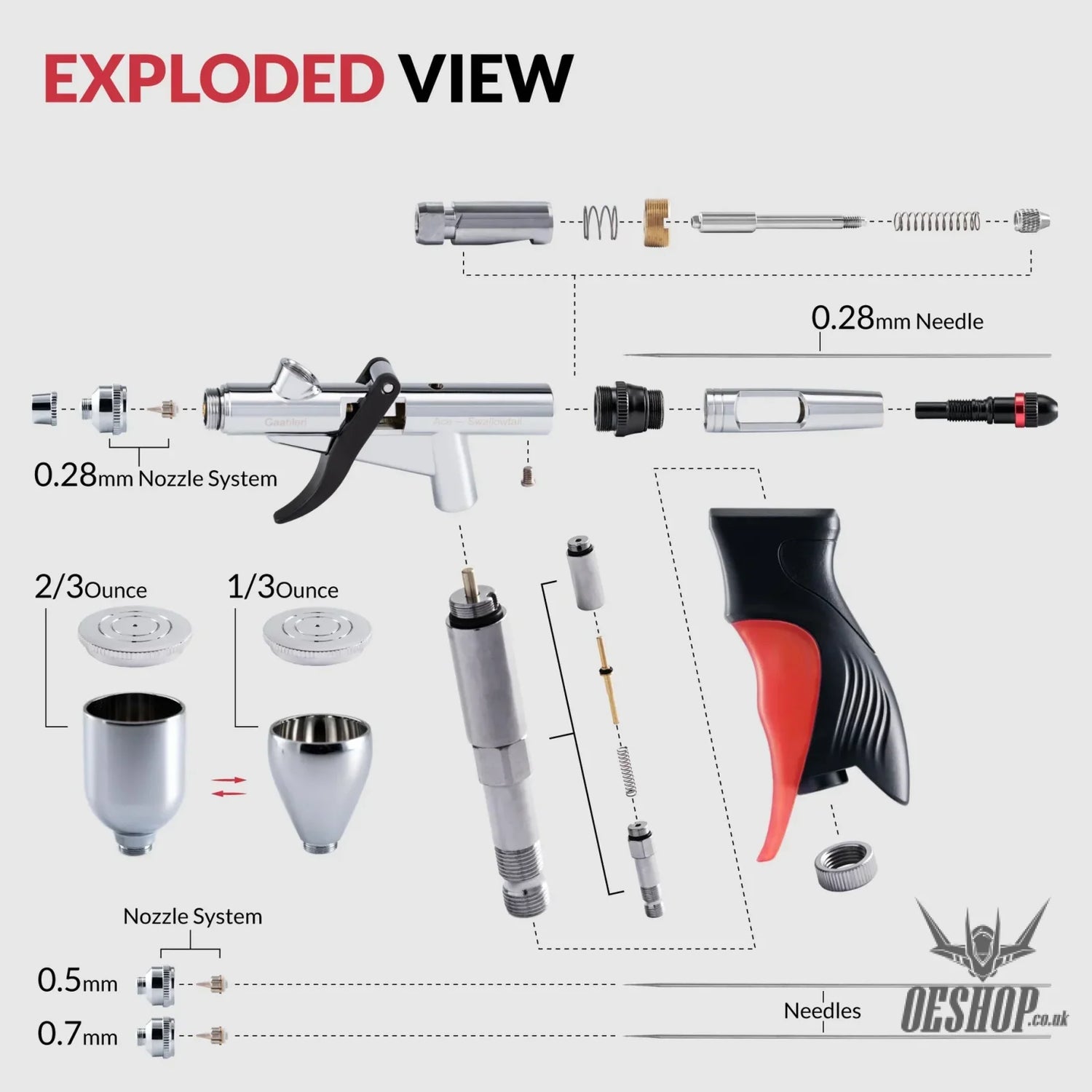 Fan Cap Upgrade: Elevate your airbrushing with the included Fan Cap upgrade, designed for ultra-wide spraying and more efficient coverage. This feature is compatible with the 0.5mm needle and nozzle, perfect for large-scale projects.