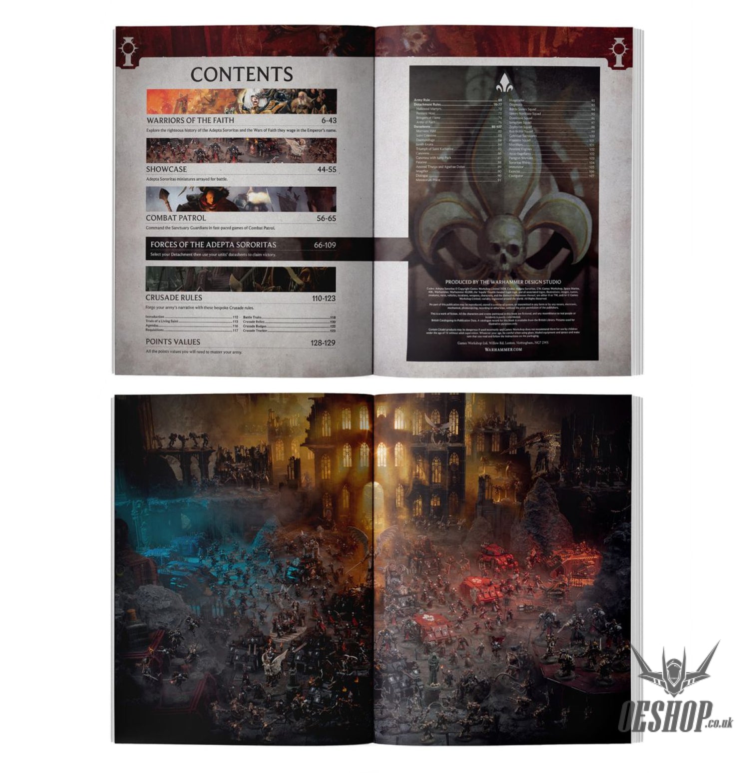 This book also contains a one-use code to unlock Codex: Adepta Sororitas content in Warhammer 40,000: The App.