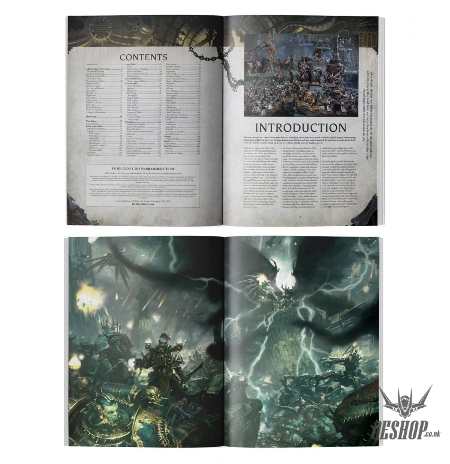 Codex: Chaos Space Marines is an essential tome for building and painting a collection of Heretic Astartes, and using them in games of Warhammer 40,000. Inside this book you'll find an infernal hoard of inspirational background material and art to inspire you, along with rules for waging your own galactic war with narrative Crusade campaigns, skirmish-sized Combat Patrol games, and plenty of rules for matched play games. This grimoire is also packed with photography to evoke the horror of facing down this terrible foe, as well as more detailed examples of single miniatures.