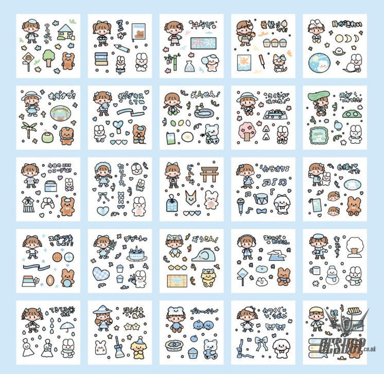 Paper Dyeing Sticker Gift Box Blue Berry Power Everyday 100 sheets Washi Paper no repeated