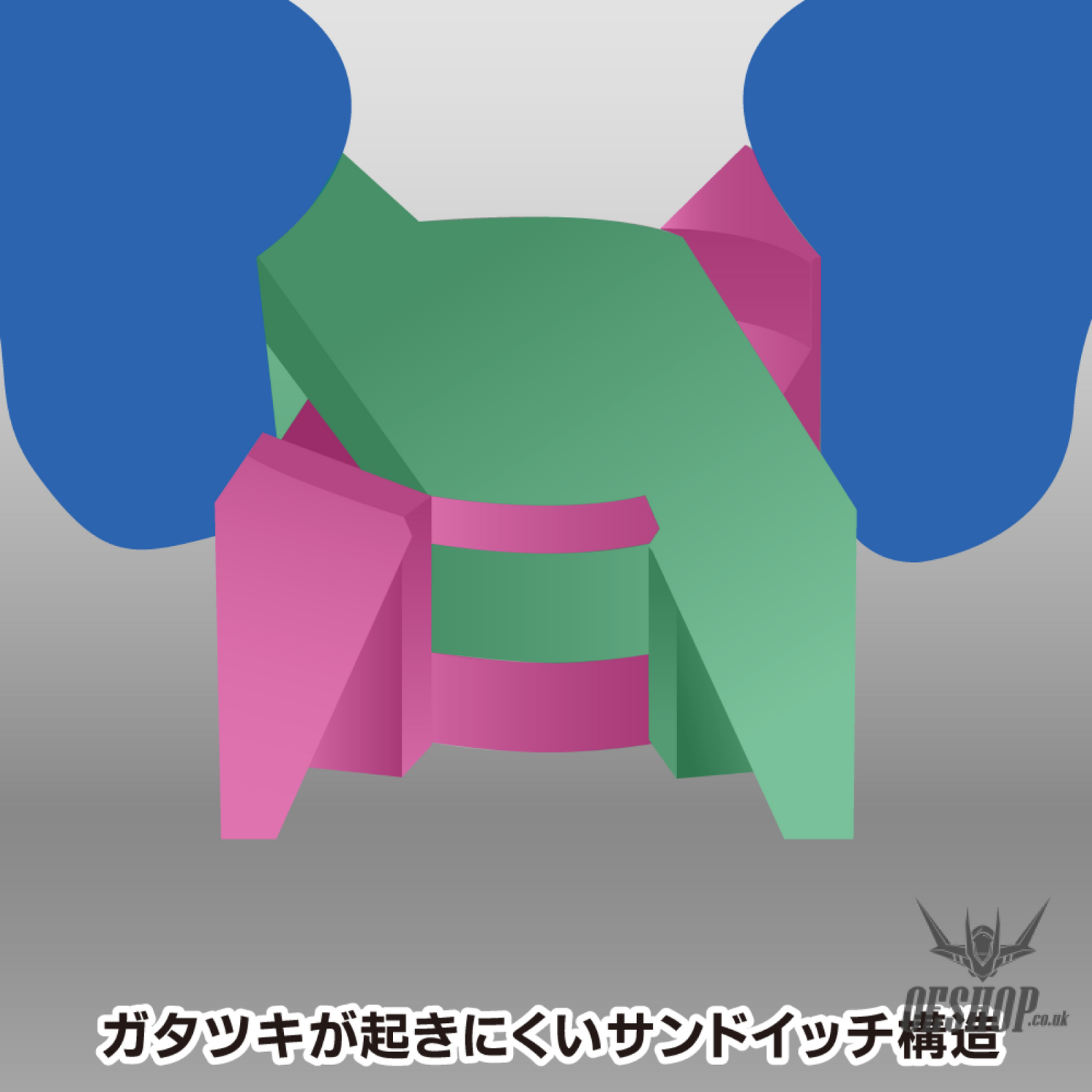 A three-piece sandwich (three-piece laminated) structure is adopted.