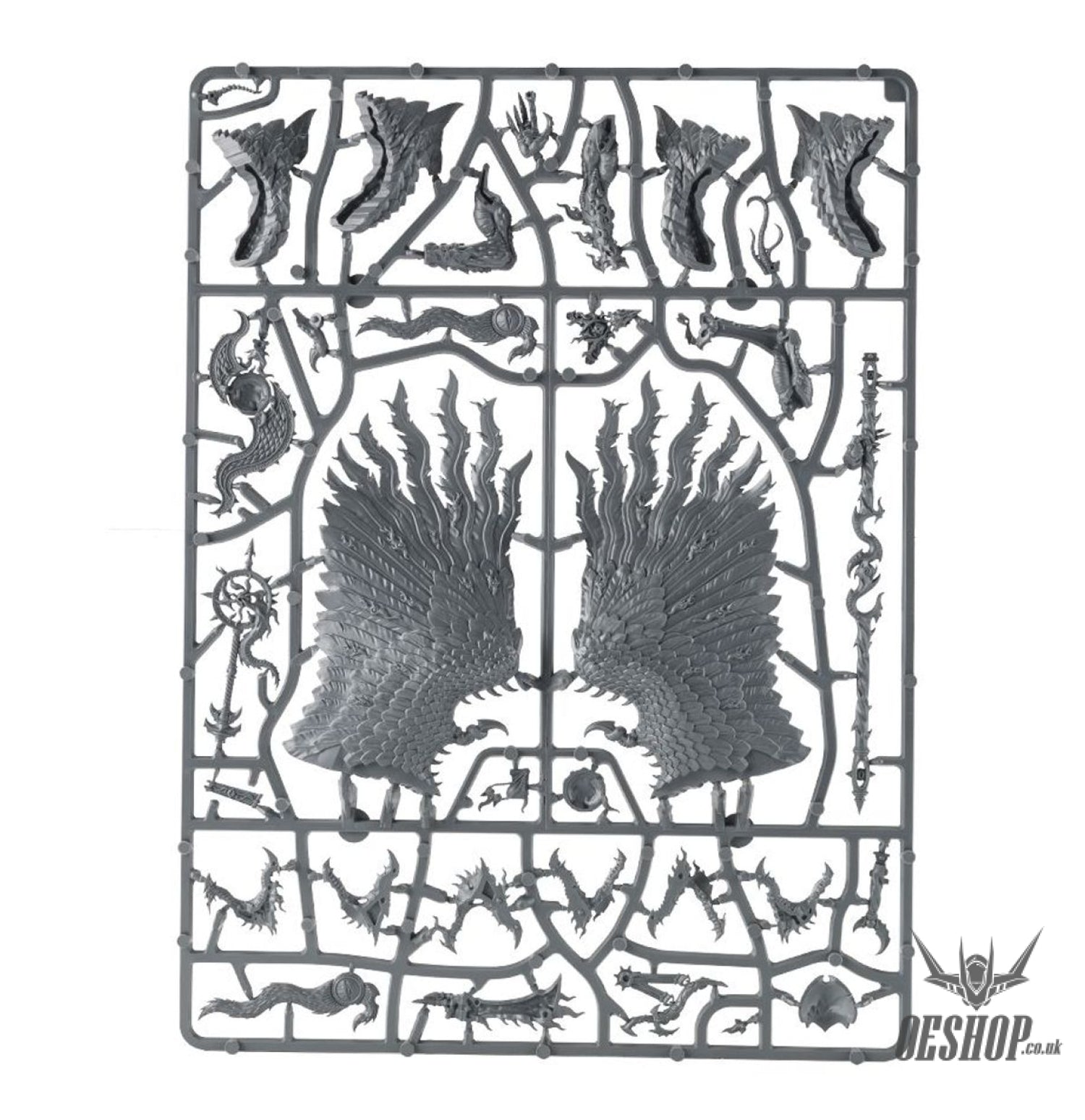 This multi-part plastic kit contains the components necessary to assemble a Lord of Change. A huge, imposing model, he makes an ideal centrepiece for any Tzeentchian army, covered as he is in the symbolism of Tzeentch that marks him out as a true master of magic. His enormous wings can be modelled in 2 different positions, and he features a choice of 3 different, sinister heads. He wields a staff of Tzeentch, which can be topped with either a symbol of Tzeentch or a flame blade; or can alternatively wield a baleful sword and Tzeentchian wand. He is accompanied by 2 Brimstone Horrors, which can be added to his base.