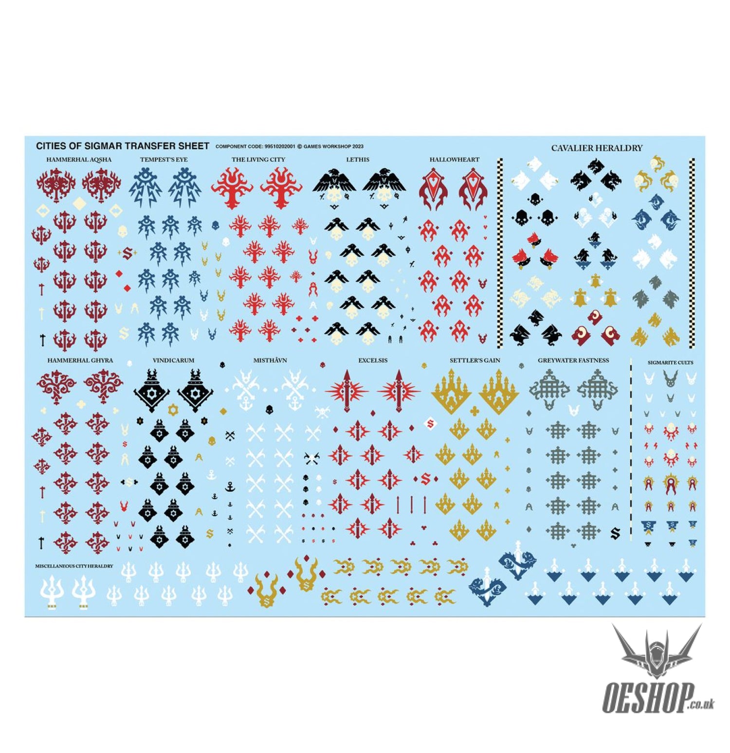 This kit comprises 115 plastic components, and is supplied with 10x Citadel 28.5mm Round Bases and 1x Citadel 25mm Round Base. Also included is a Cities of Sigmar Transfer Sheet, featuring 410 Free City icons, Sigmarite cult sigils, and other forms of heraldry.