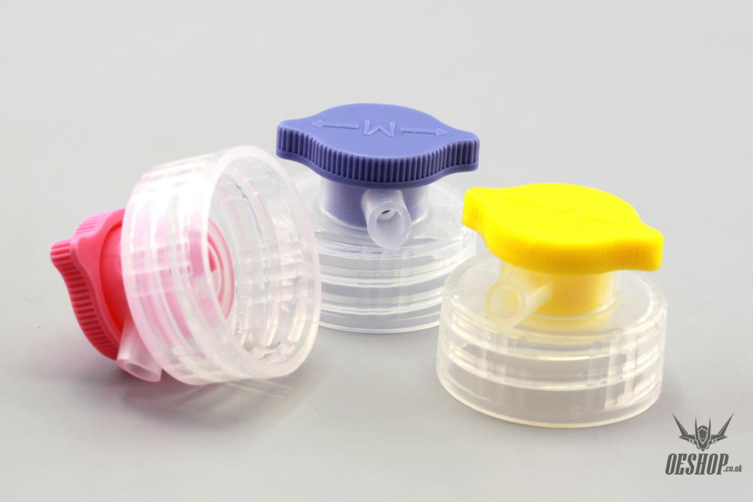 A set of 3 pouring spouts for the Mr Color, Mr Colour Levelling & Mr Hobby Aqueous 250ml & 400ml thinners. Replaces the standard screw on cap with a 1/4 turn valve for easily controlled pouring & gives an airtight seal when closed