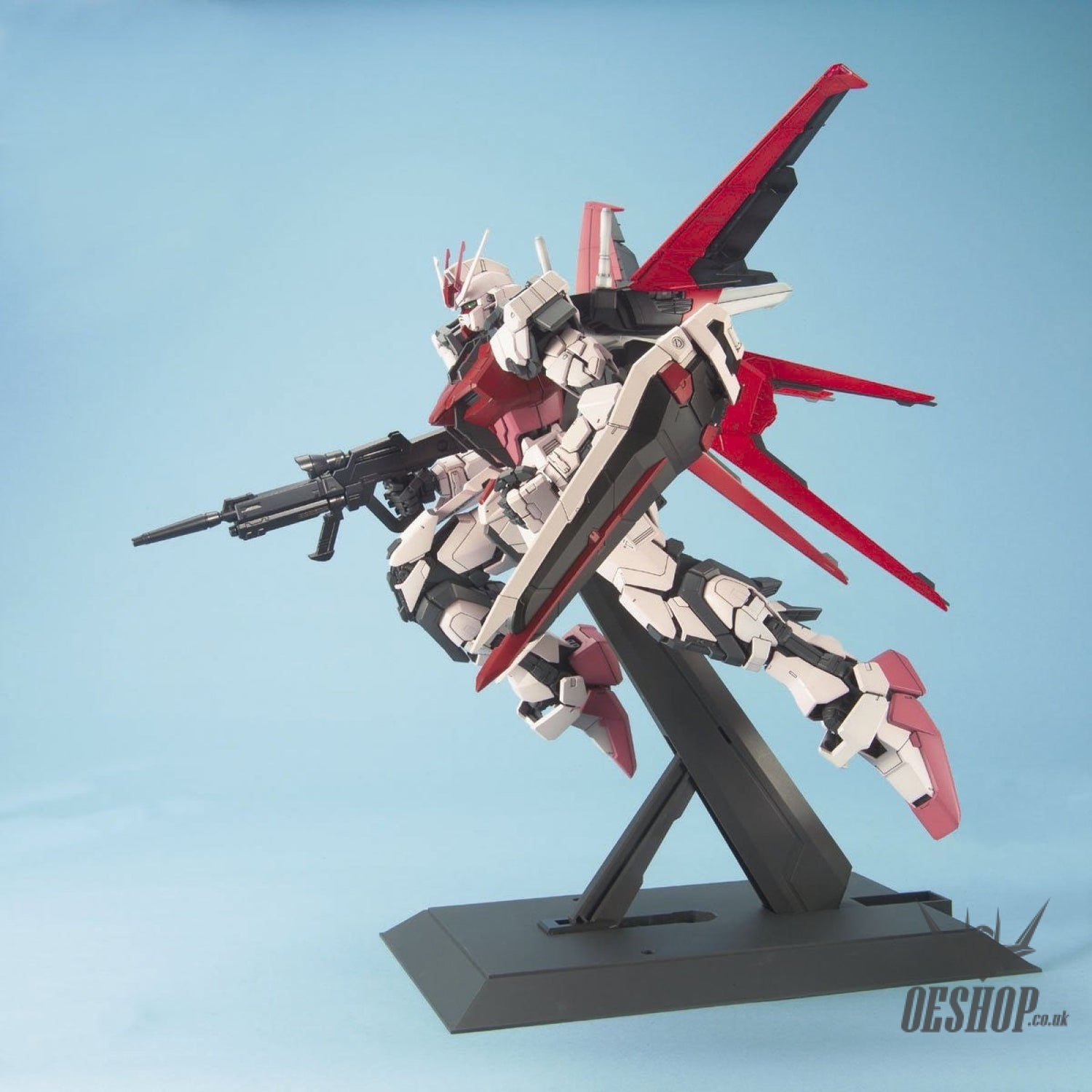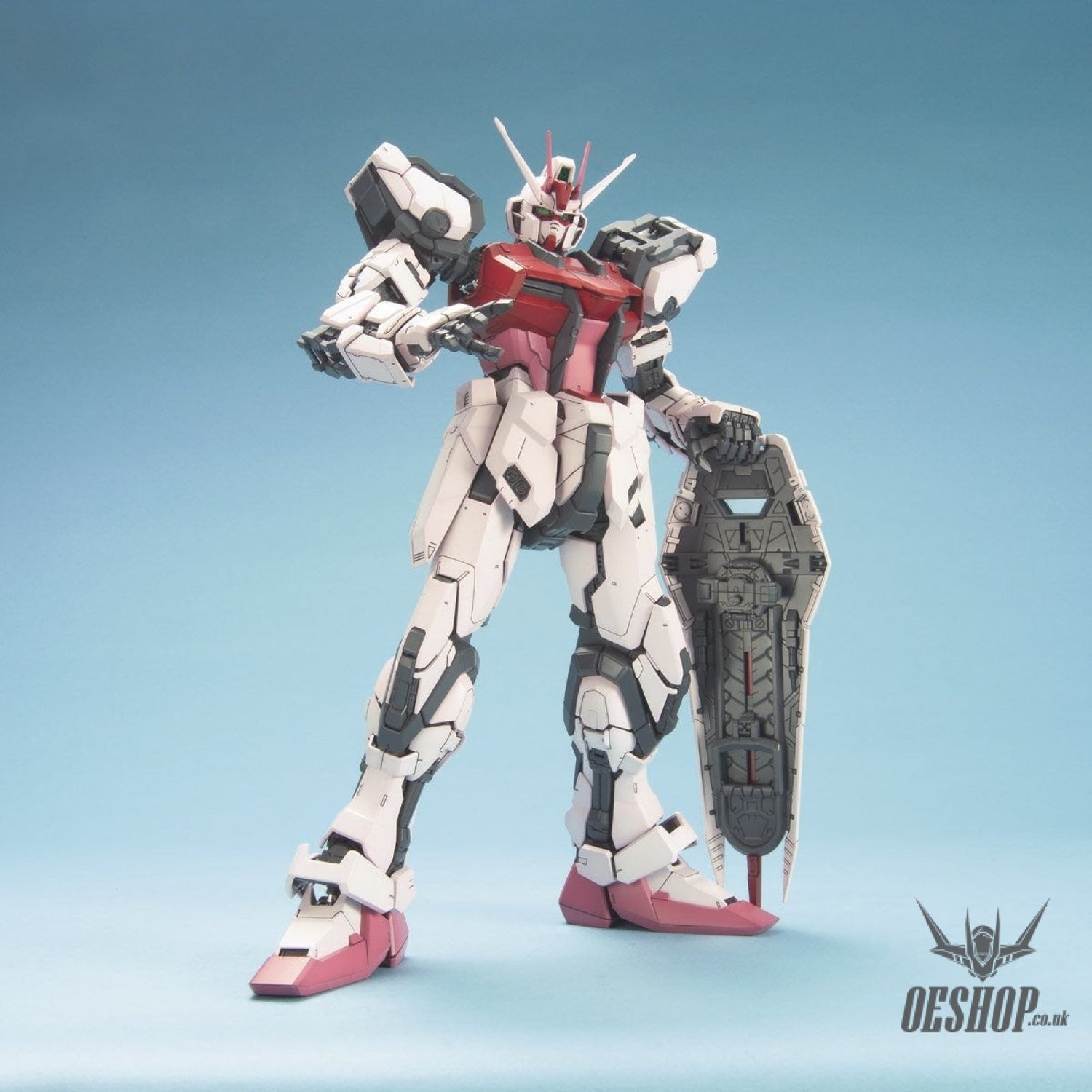 Gorgeous! Bandai's Perfect Grade line continues with Gundam Seed's "Strike Rouge," superbly molded in coloured plastic, with the same fantastic construction quality demonstrated in previous PG kits. A whopping number of parts are included in the typically-large (and heavy!) box -- besides the Strike Rouge, there are parts included for the Skygrasper and Aile Striker! Metal-plated parts (in pink!) are included for the Strike Rouge's custom weapons. Screws, springs, fabulous Gundam Stickers and dry-transfer decals are included; two construction manuals (one for the Strike Rouge, one for the Skygrasper and Aile Striker) are included to walk you through the building of all three models. An "instruction manual" is also included for those who like to paint their Gundam models (of course it doesn't need to be painted), and also for indicating precise locations of the markings.