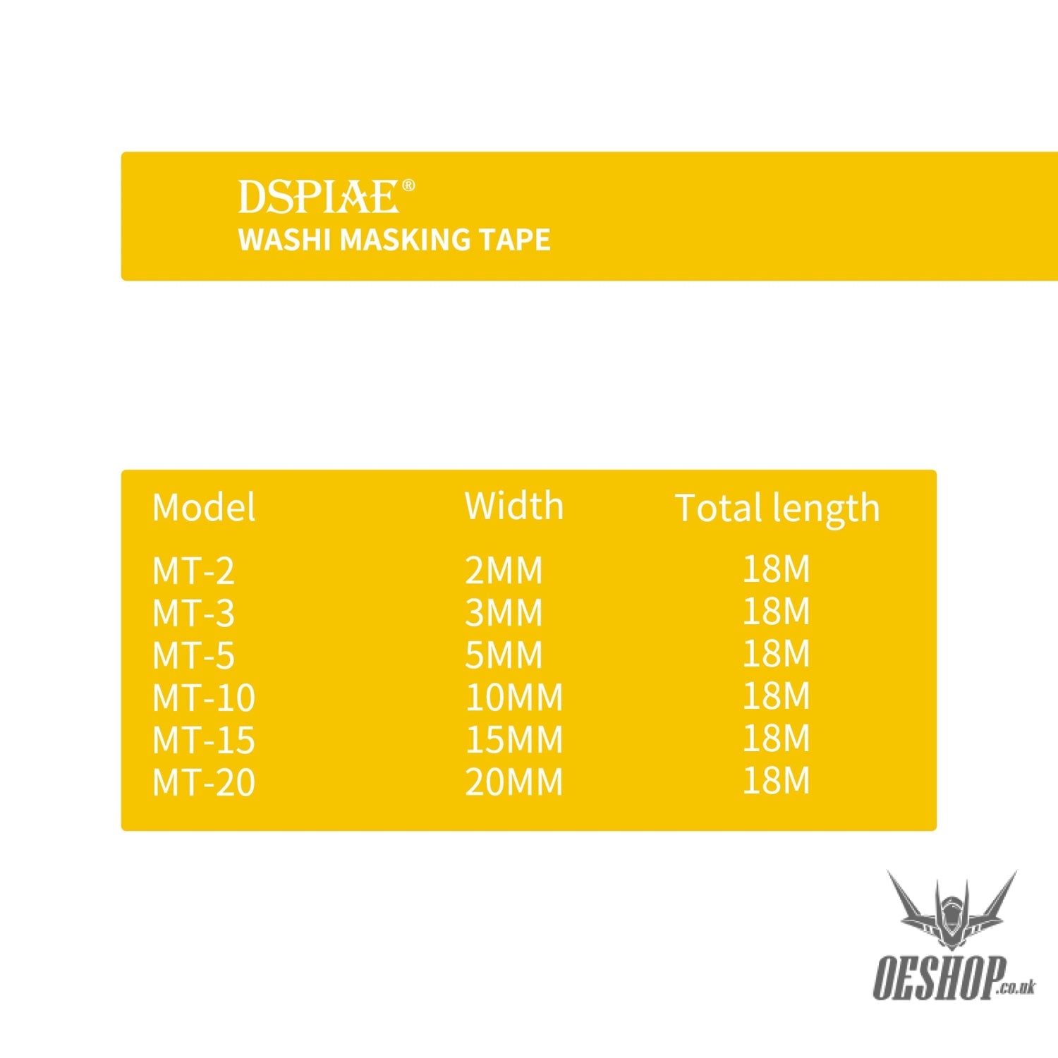 DSPIAE MT Washi Masking Tape 18M 2-20mm