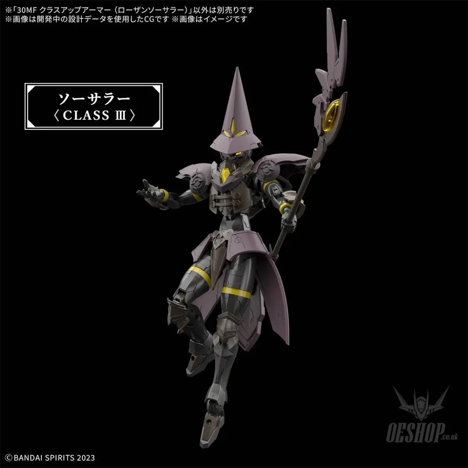 This "Class Up Armor" set from Bandai's "30MF (30 Minutes Fantasy)" model-kit series, where you can create your own fantasy job, allows you to "class up" your Rosan Wizard to a Rosan Sorcerer with "Armor Cross" (armor replacement)! The attribute of the Element Core is "lightning," and the face design and coloring are different from the Liber Sorcerer. Place your order today!