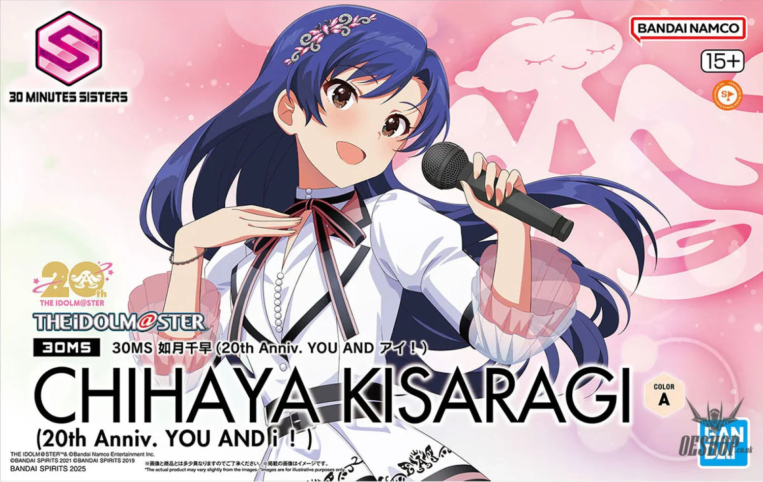 Chihaya Kisaragi from "The IdolM@ster" joins the "30MS (30 Minutes Sisters)" action-figure model-kit series from Bandai! This all-in-one set allows you to build a complete, incredibly cute character in the 20th anniversary costume "You And Ai!"! Three types of tampo-printed facial expressions are included; the color coding inside the mouth is reproduced by parts division. You can use parts replacement to display her without her hair accessory. The costume uses clear parts for details such as her hair accessory and collar, and you can reproduce the colorful appearance and precise details just by assembling the kit. Her skirt is made of a sheet with a pattern printed on it. The skin parts have a matte finish for a soft-looking, light-reflecting effect. Different hands are provided, too, including ones that can hold a microphone. Order her for your own collection today!