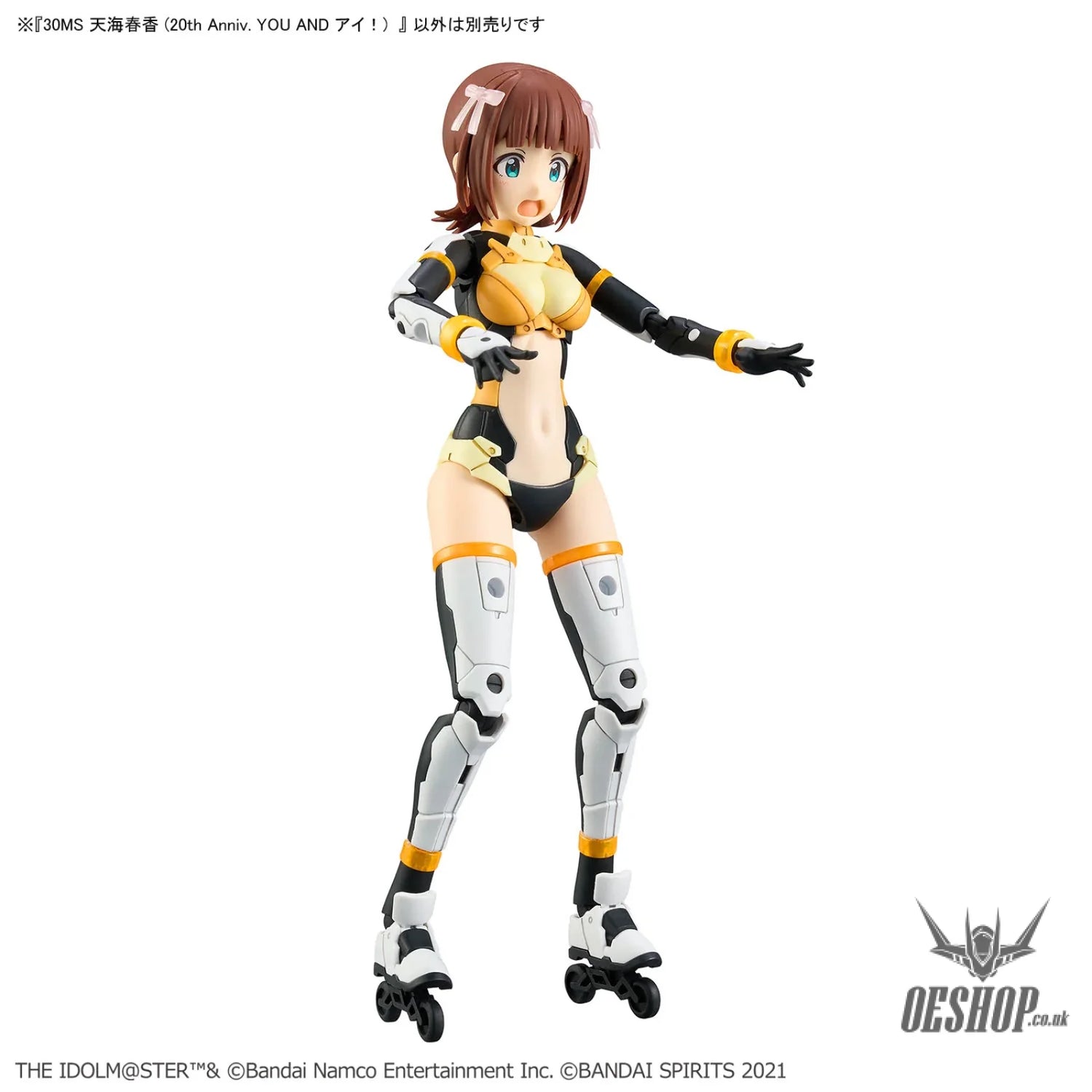 Haruka Amami from "The IdolM@ster" joins the "30MS (30 Minutes Sisters)" action-figure model-kit series from Bandai! This all-in-one set allows you to build a complete, incredibly cute character in the 20th anniversary costume "You And Ai!"! She comes with two types of hair accessories: one that goes with the 20th anniversary costume, and an original design. Three types of tampo-printed facial expressions are included; the color coding inside the mouth is reproduced by parts division. The costume uses clear parts for details such as her hair accessory and collar, and you can reproduce the colorful appearance and precise details just by assembling the kit. Her skirt is made of a sheet with a pattern printed on it. The skin parts have a matte finish for a soft-looking, light-reflecting effect. Different hands are provided, too, including ones that can hold a microphone. Order her for your own collection today!