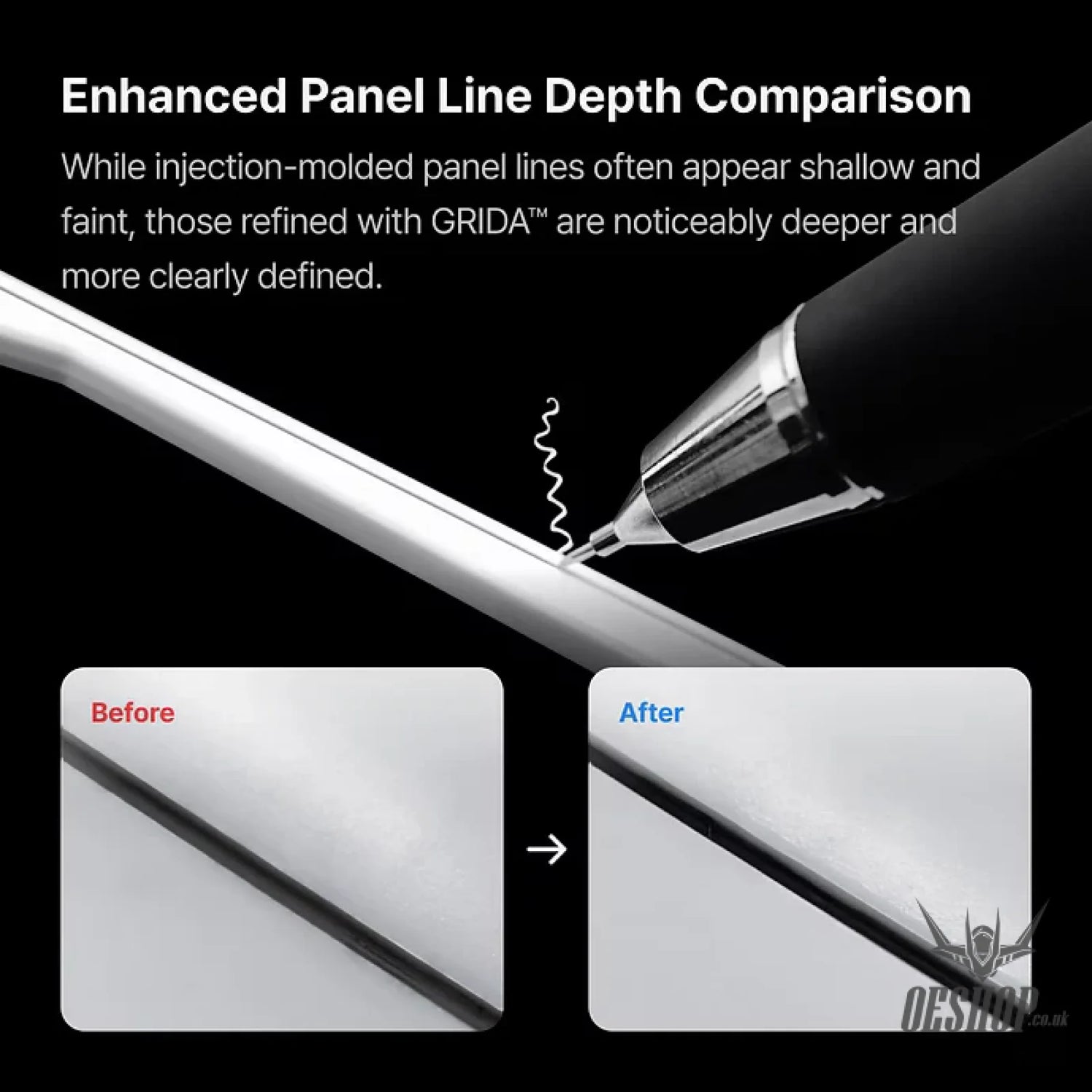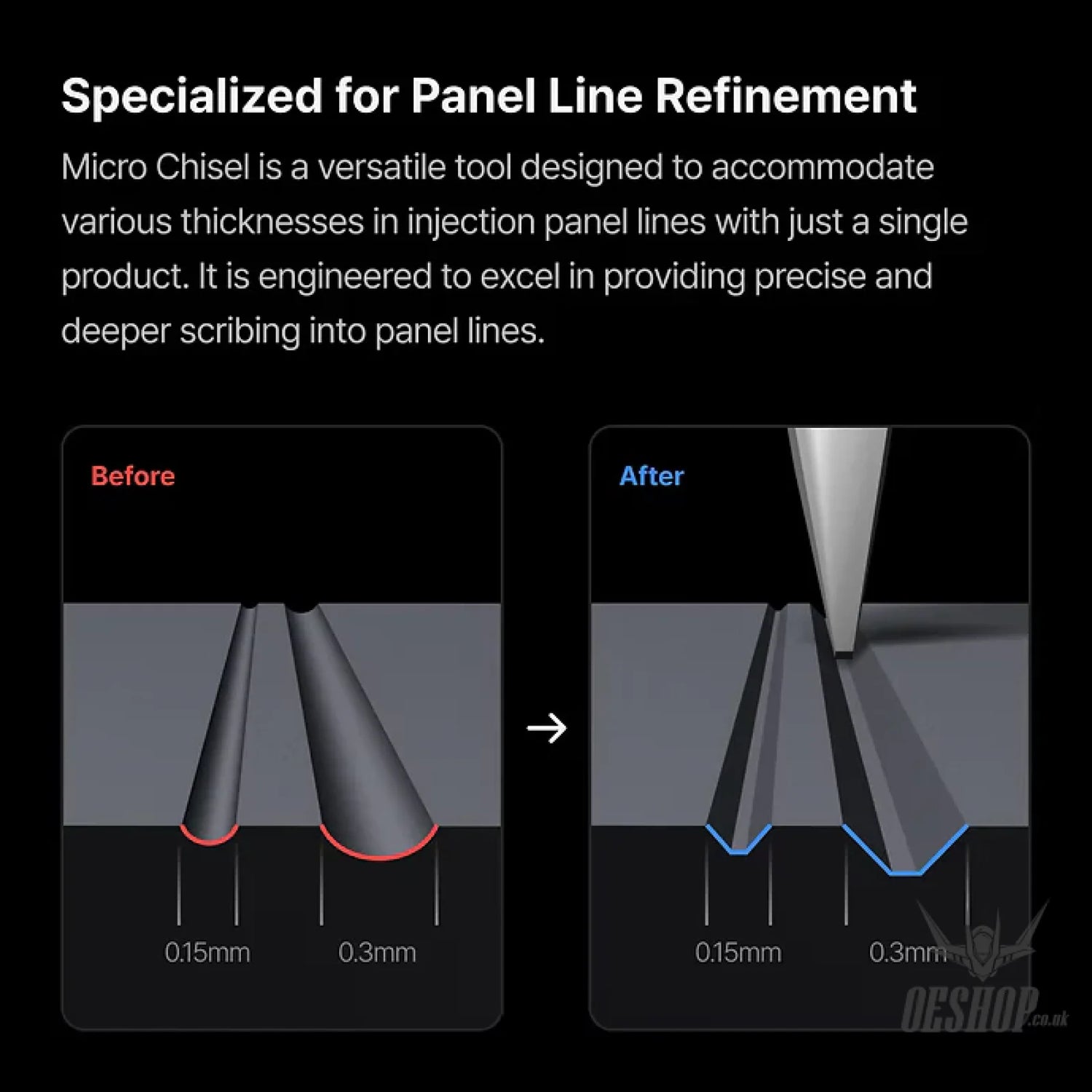 GRIDA™ Micro Chisel is precisely designed with eight sharp angles, allowing it to scribe panel lines accurately and delicately from any direction. Built for precision, every unit is carefully handcrafted by master craftsmen.