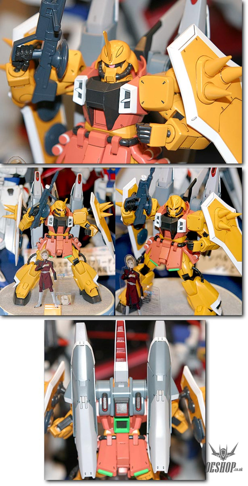 Very impressive injection-plastic kit of the Blaze Zaku Phantom, customised for Heine Westenfluss! Molded all in colour and featuring snap assembly, it'll be fun to put together and even more fun to show off on your desk! Polycaps add ease to assembly and mobility to the joints; foil and clear stickers finish it off in style. A 1/20 scale clear "character card" featuring Heine and his vital stats is included as well!