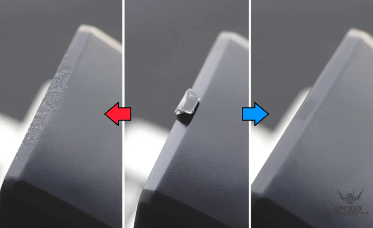 RASER + is a sanding tool specialized for removing gates. It has a power of 220 grit and the sanded surface is finished without leaving any scratches.