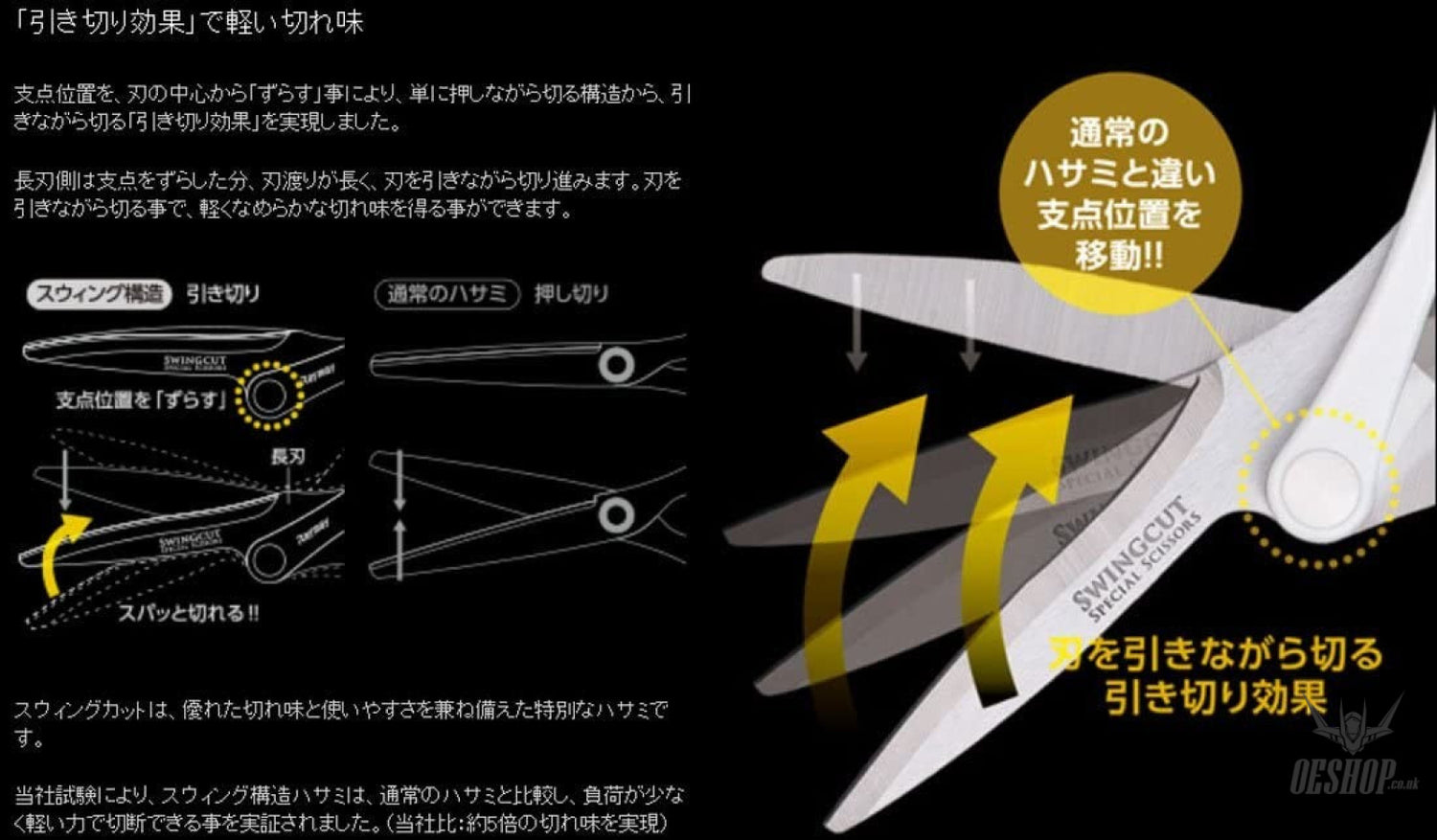 By shifting the fulcrum position from the center of the blade, the "pulling effect" of cutting