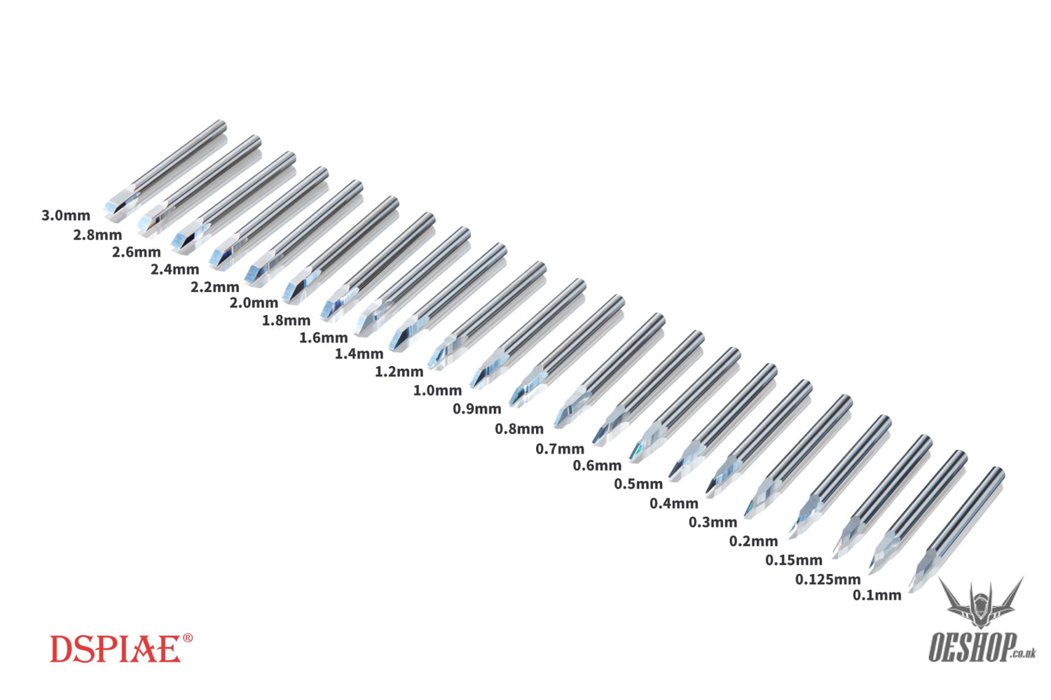 DSPIAE PB 0.1mm - 3.0mm Tungsten Steel Push Broach (Chisel) Shank Dia: 3.175mm