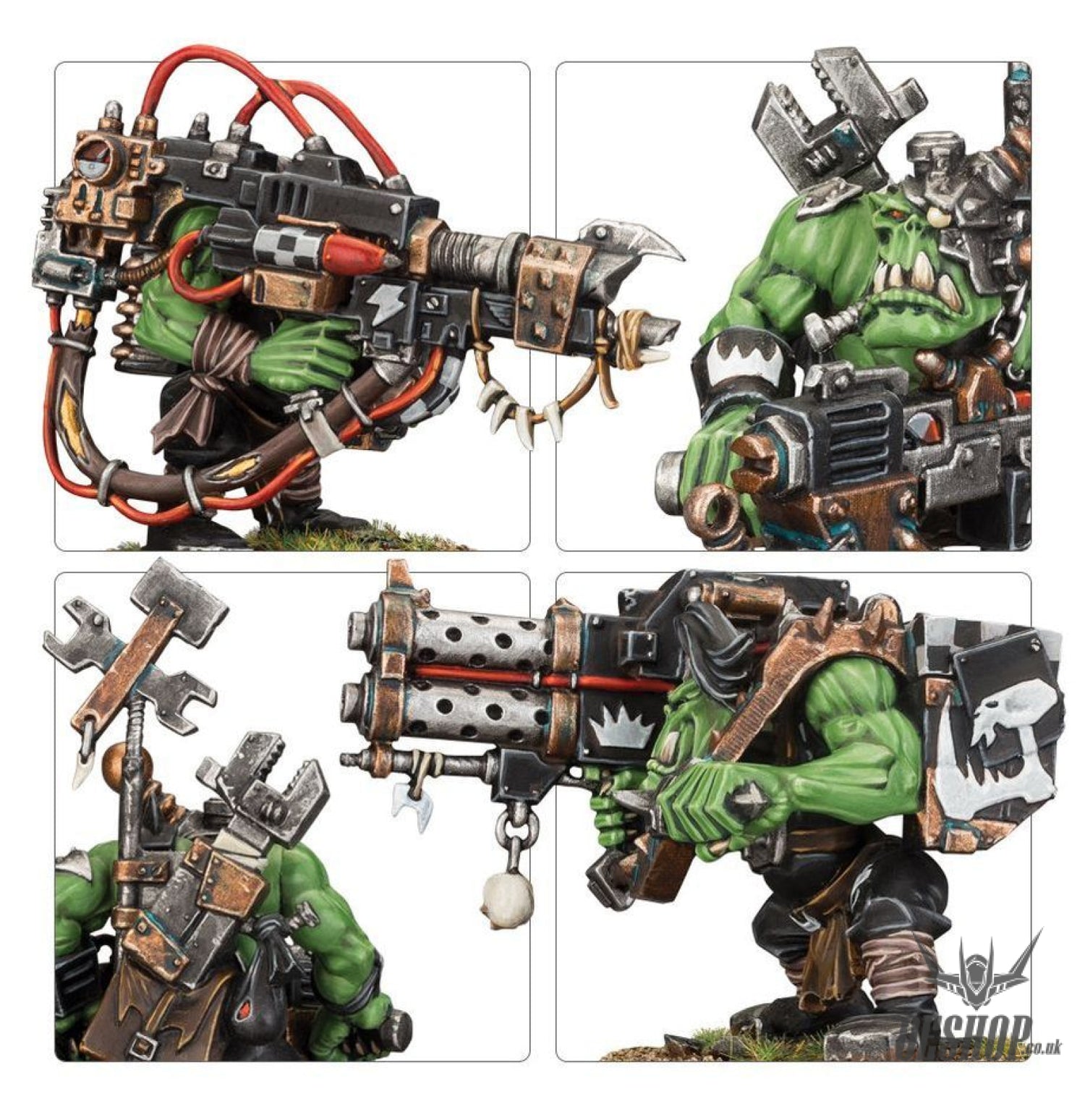 Ork Meks are responsible for creating the most destructive weapons an Ork can lay his big green hands on. Whether it is the surprisingly sophisticated Burnas or the far louder, shoulder-mounted Deffguns, a Mek is never short of customers.
