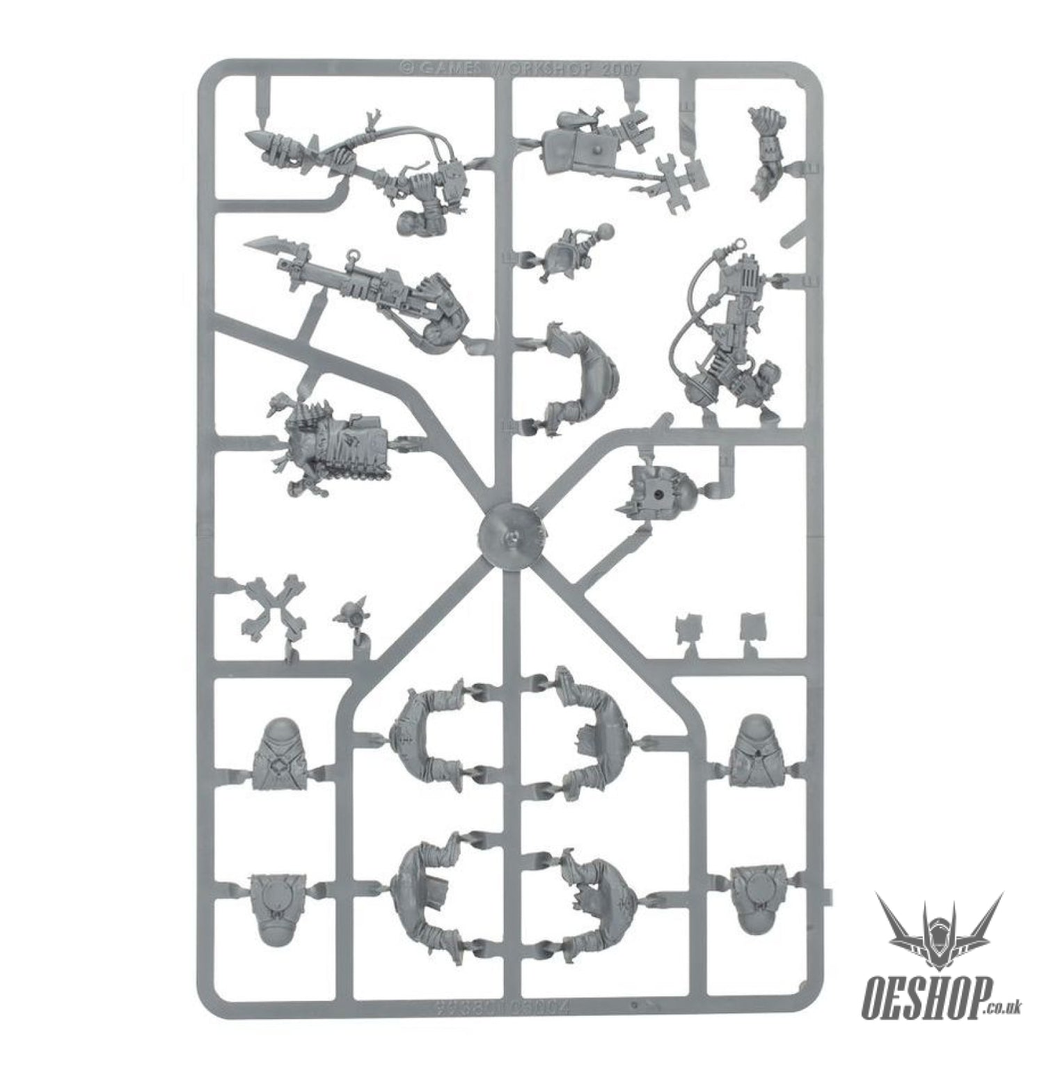 This multipart plastic boxed set contains enough components to make 5 models: either 4 Lootas or 4 Burna Boyz, as well as an Ork Mek armed with a kustom mega-blasta. Models supplied with 32 mm round bases.