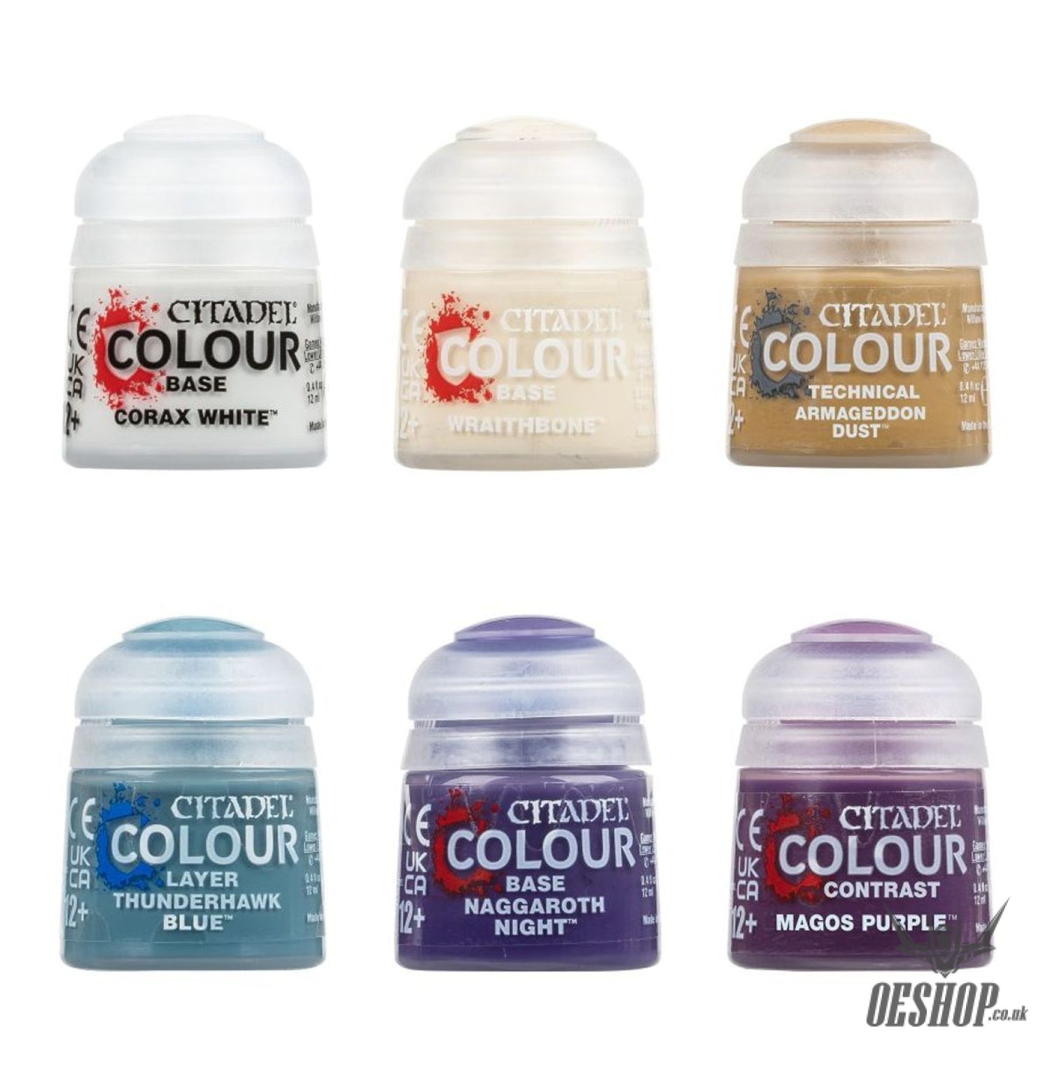 The six Citadel Colour paints are supplied in 12ml pots and feature the essential colours needed to paint the miniatures in the colours of Hive Fleet Leviathan, as well as a Technical paint to create textured bases: