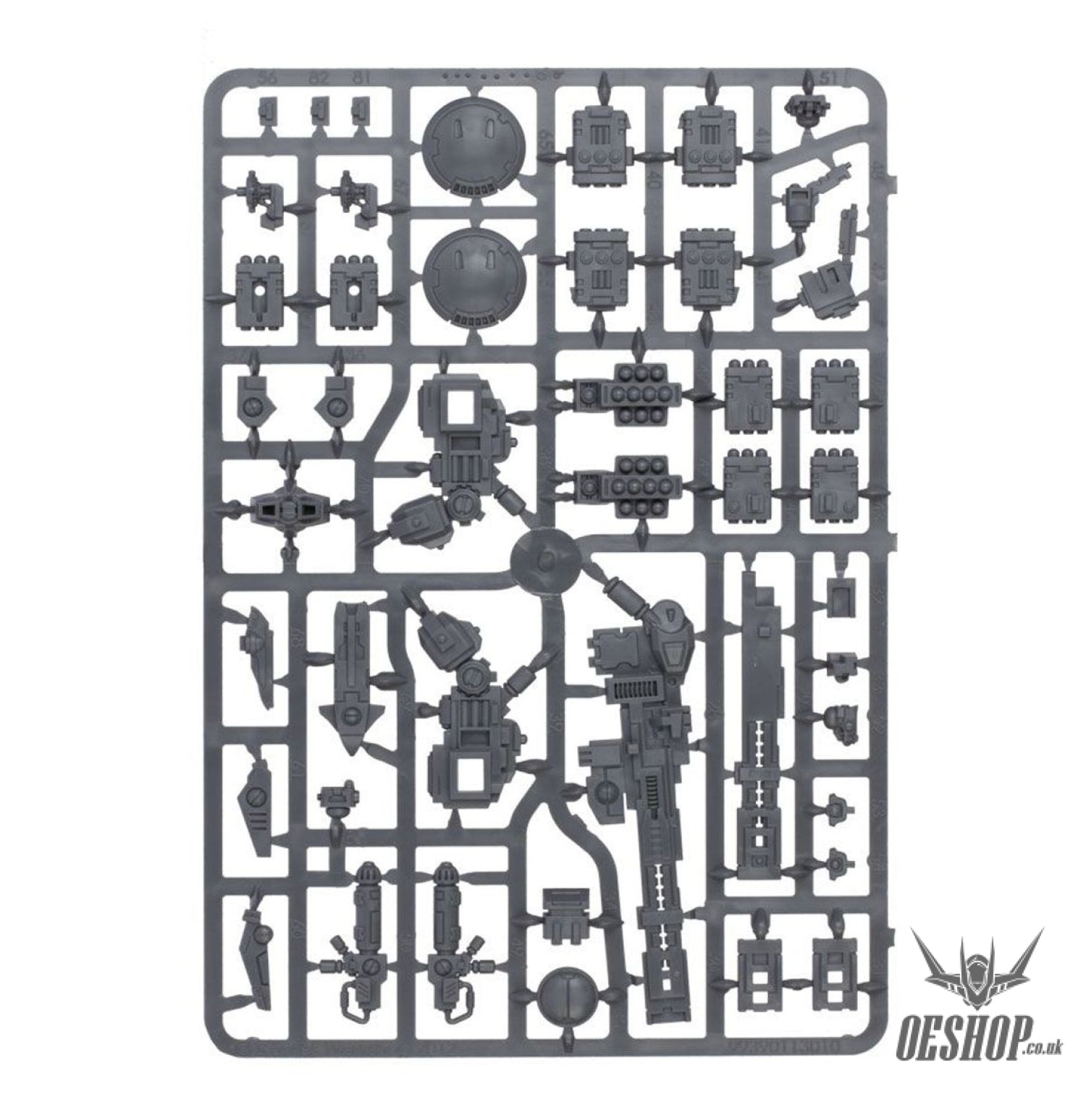 This multi-part plastic kit contains 91 components and a T'au transfer sheet with which to make a Broadside Battlesuit and two Drones.