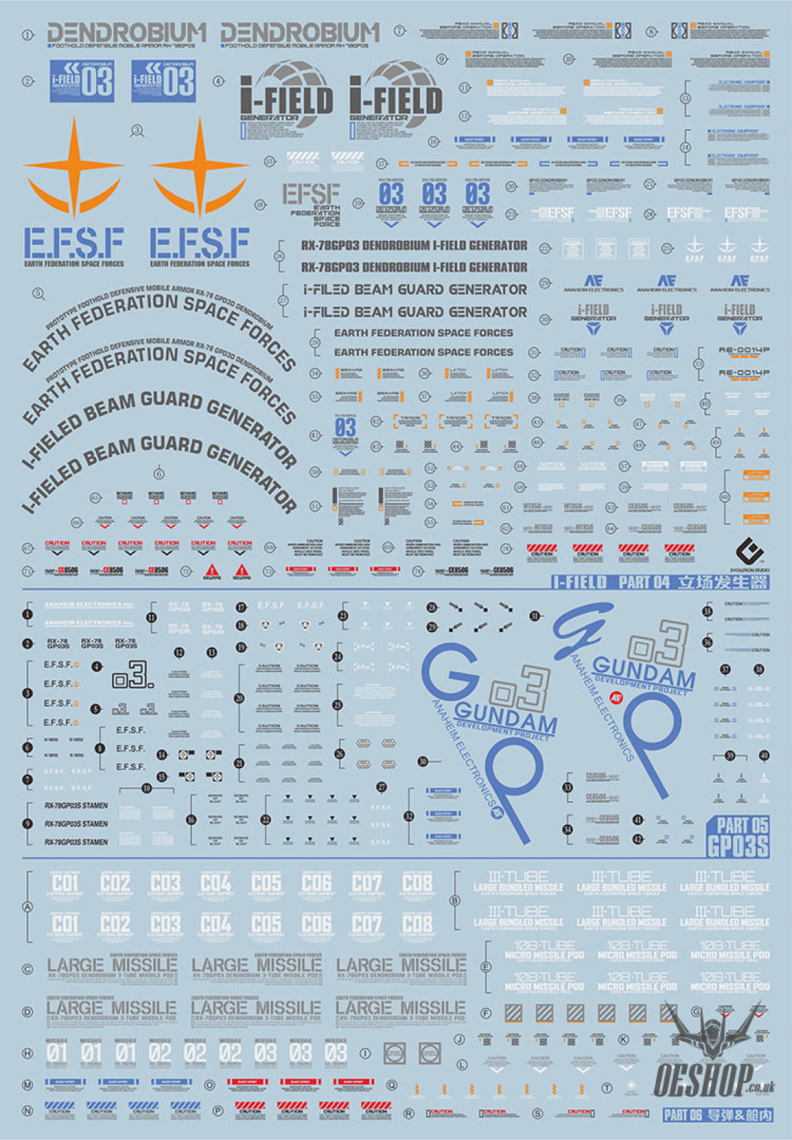 Custom waterslide decals for use with Bandai HG GP03D Dendrobium