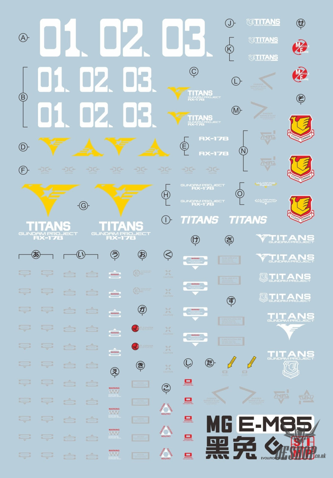 EVO - E-MG85 (UV) MG MK-II(Titans) Black Evolution Studio Decals