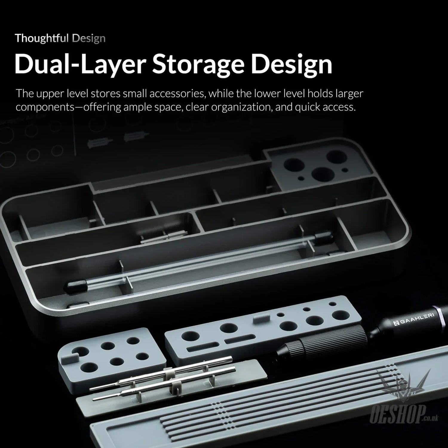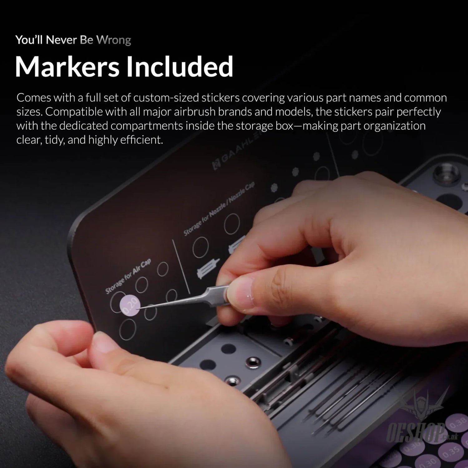 Comes with custom-fit silicone trays, nano anti-slip pads, and a full set of label stickers for clear, efficient organisation. Compatible with all Gaahleri models, including Swallowtail and Mobius, as well as most major airbrush brands on the market.