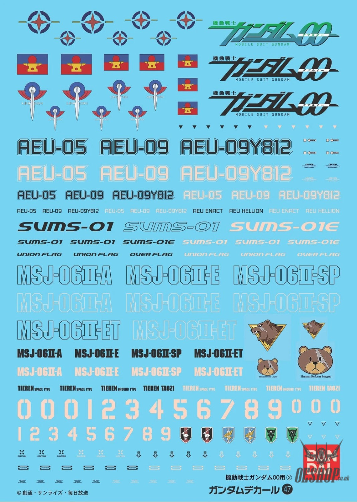 Bandai Gundam Decal GD-47 1/144 Union/Human Reform League/AEU Gundam00 Series No 2 is backordered and will ship as soon as it is back in stock.