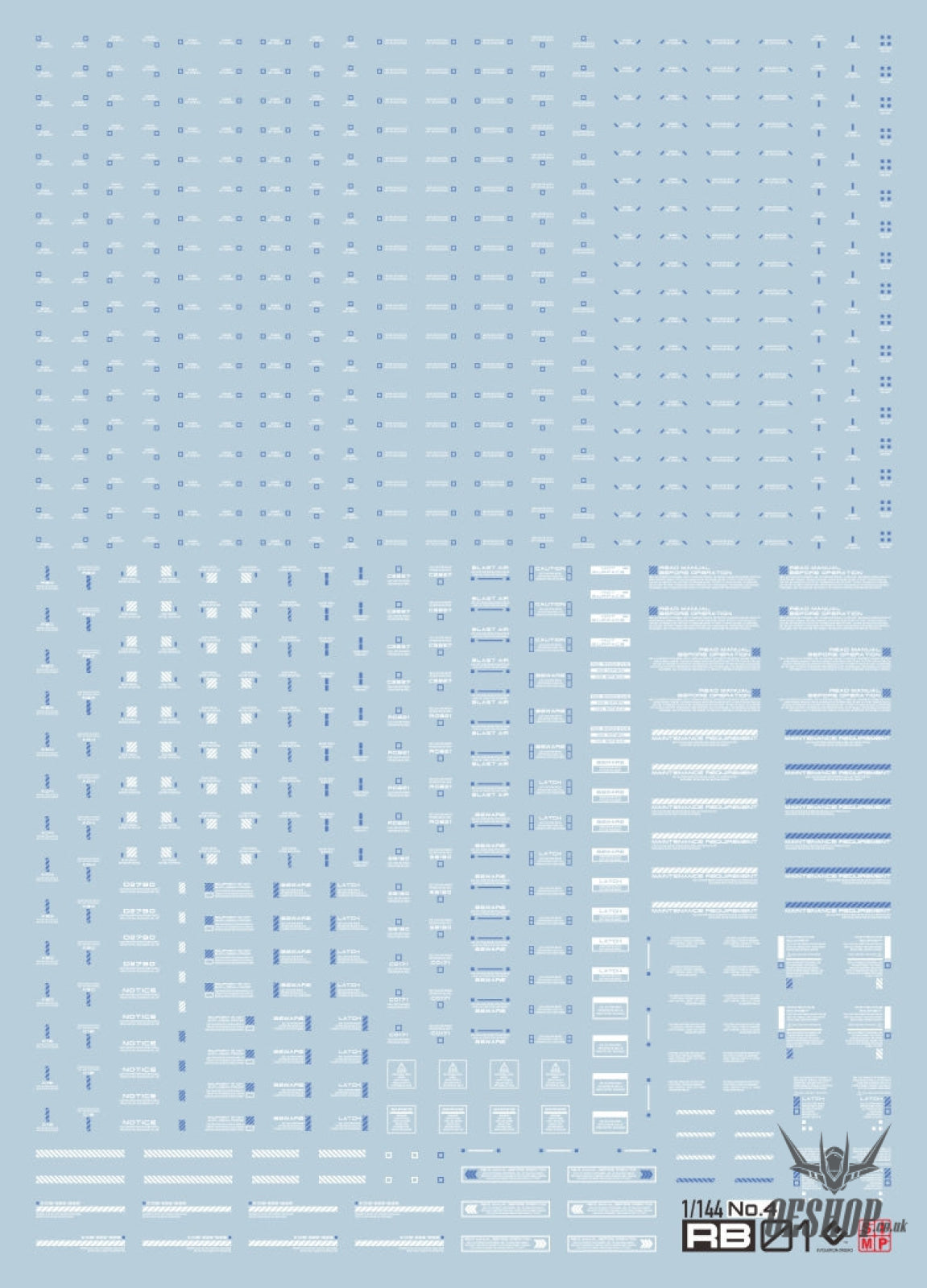 Custom waterslide decals for use with Bandai 1/144 scale model kits or similiarly sized models.