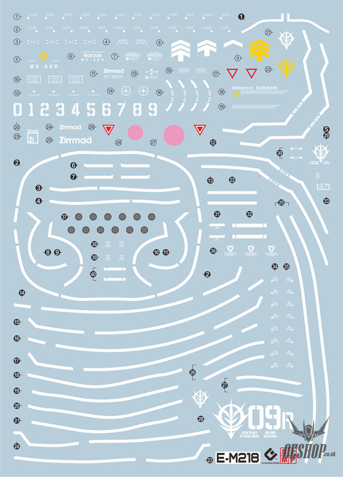 EVO - E-MG218 (UV) MG MS-09R RICK DOM Evolution Studio Decals