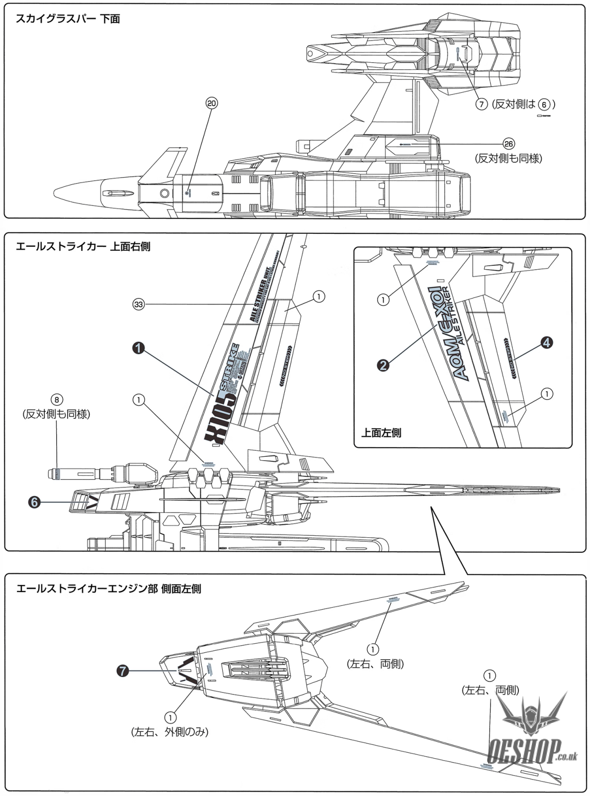 Custom waterslide decals for use with Bandai 1/60 PG Sky Grasper
