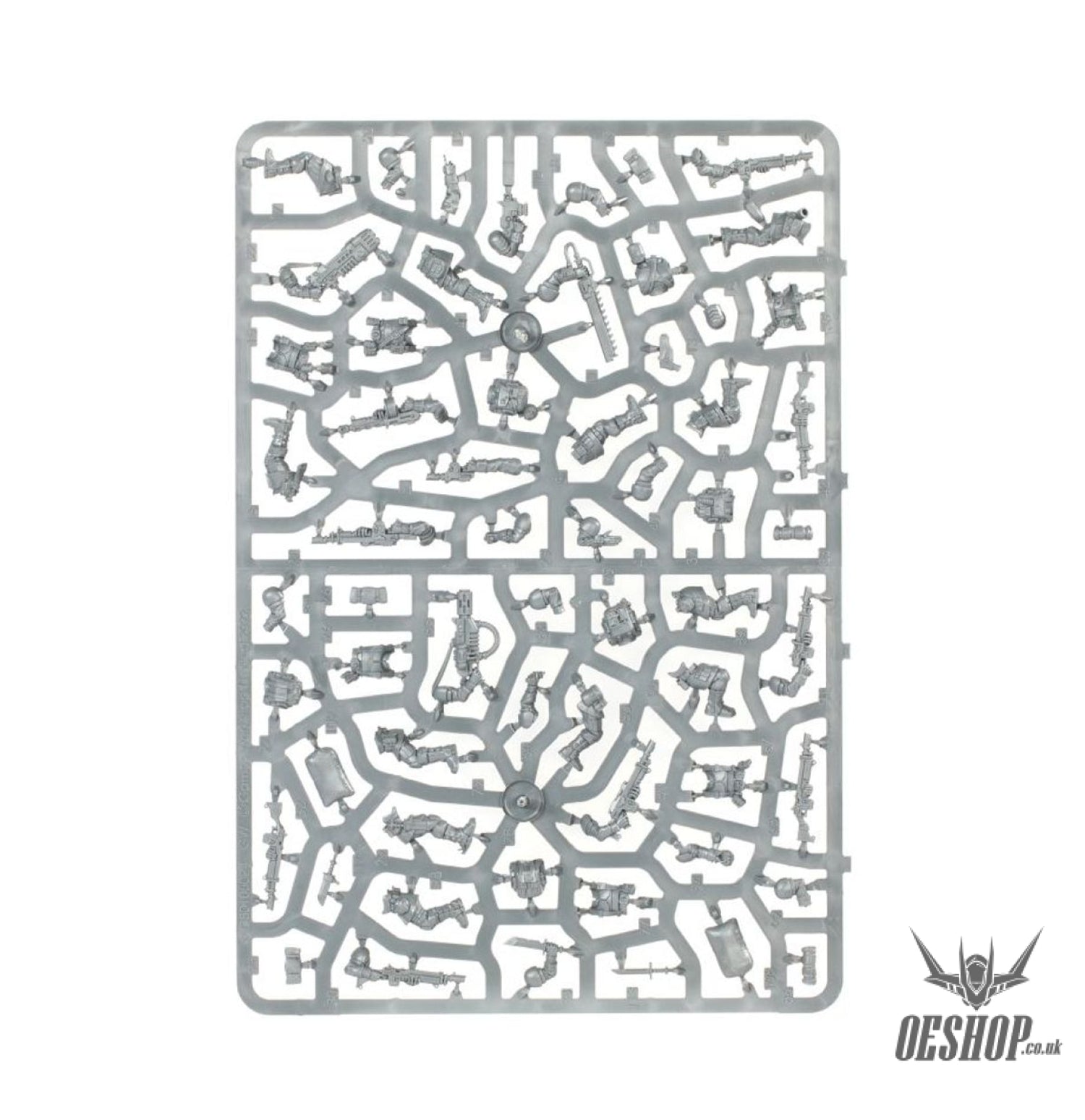 This multipart plastic kit builds 10 Cadian Shock Troops – the core of many Astra Militarum regiments. Each Shock Trooper is armed with frag grenades and a reliable lasgun, led by a Sergeant armed with either a drum-fed autogun, or a chainsword with a laspistol or bolt pistol. The kit also includes a variety of special weapons to equip your Shock Troopers – a flamer, grenade launcher, meltagun, and plasma gun – as well as a vox-caster for battlefield communications.
