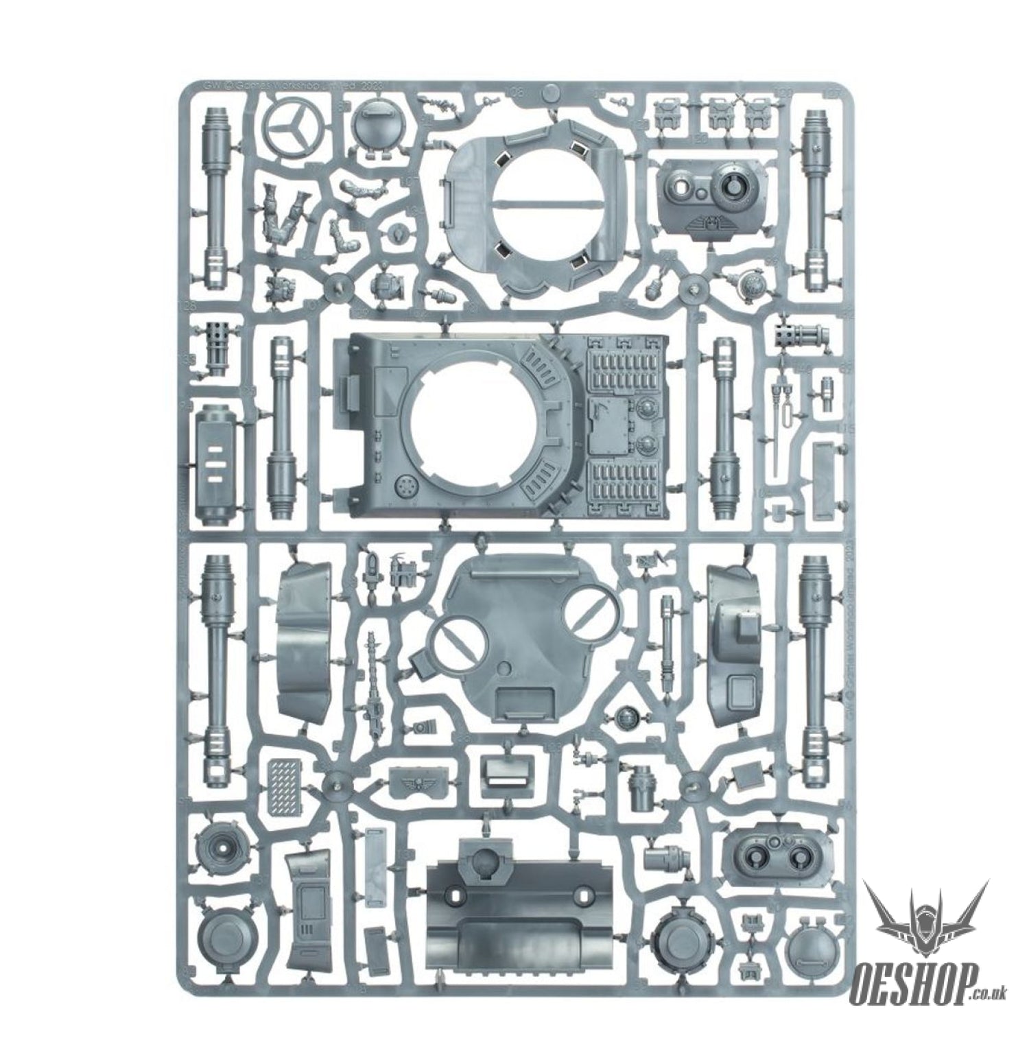 This kit comprises 171 plastic components and includes an Astra Militarum Vehicle Transfer Sheet, with 475 transfers featuring numerals, sigils, and a variety of regimental heraldry. This miniature is supplied unpainted and requires assembly – we recommend using Citadel Plastic Glue and Citadel Colour paints.